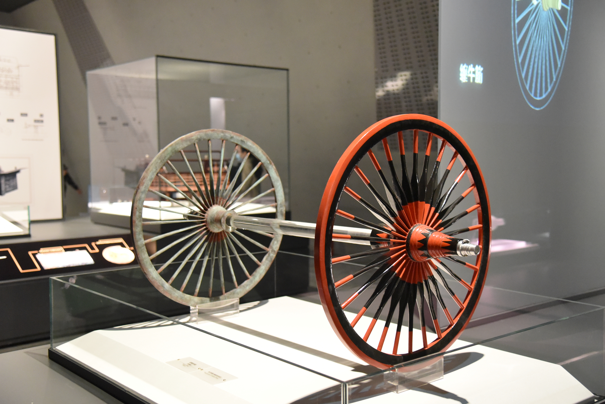 其中「據形求實:秦陵銅車與秦代馬車」單元以銅車馬為依據,以秦始皇兵馬俑坑和秦始皇帝陵園出土的馬車遺迹為參考,結合歷史文獻,從車輿結構、華美裝飾、駕輓方式等不同方面對秦代馬車進行剖析和復原,展現秦代馬車中富含的科技文化元素和高超的製作工藝。「這一單元共分為『載脂載舝:輪軸結構與力學應用』等八個部分,採用實物陳列、三維動畫等展示方式。」黨士學告訴記者,特別是「羽蓋華蚤」部分,通過銅車馬坑木車遺迹出土的錯金銀傘杠箍、傘蓋環形金構件、銀質蓋弓帽等展品,以及傘蓋的部分復原構件,展示秦代馬車的華美裝飾和巧妙設計,製作工藝高超。