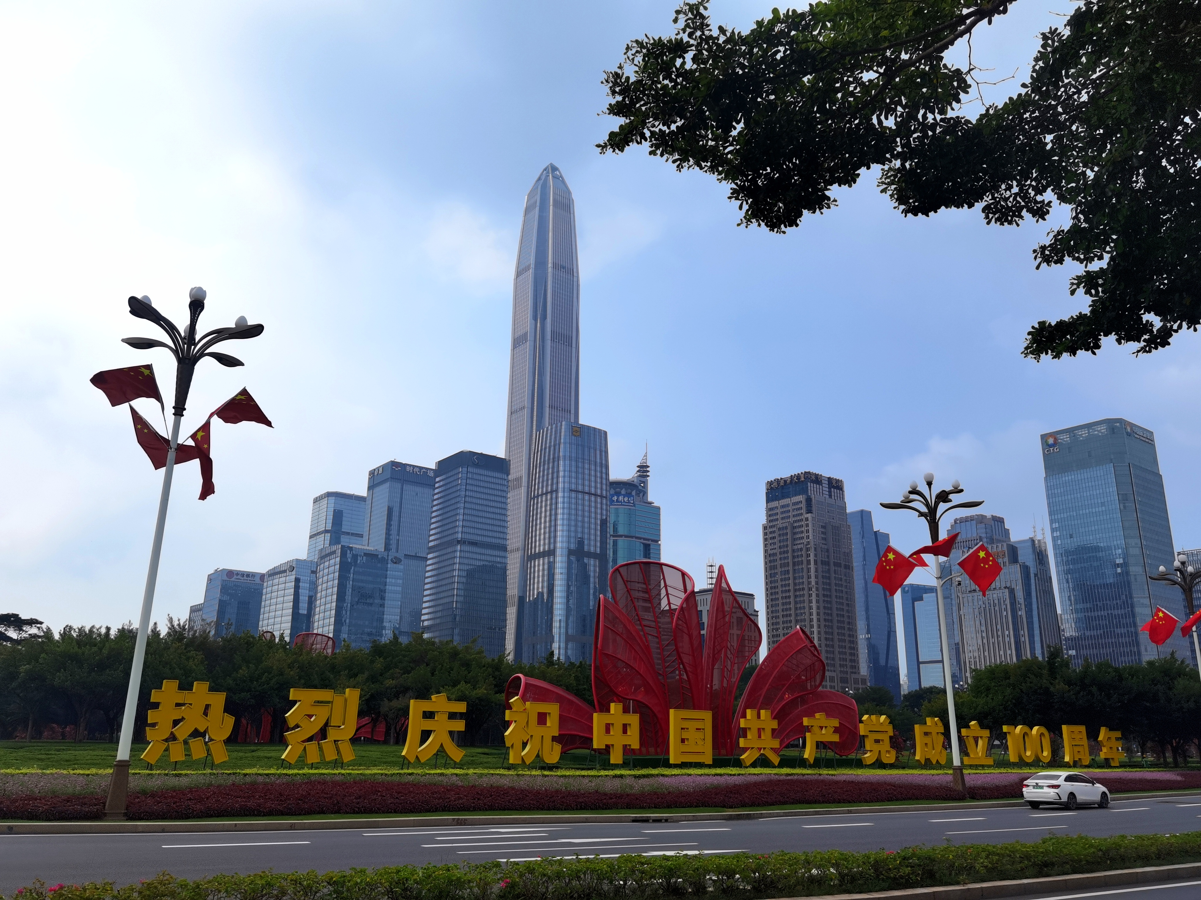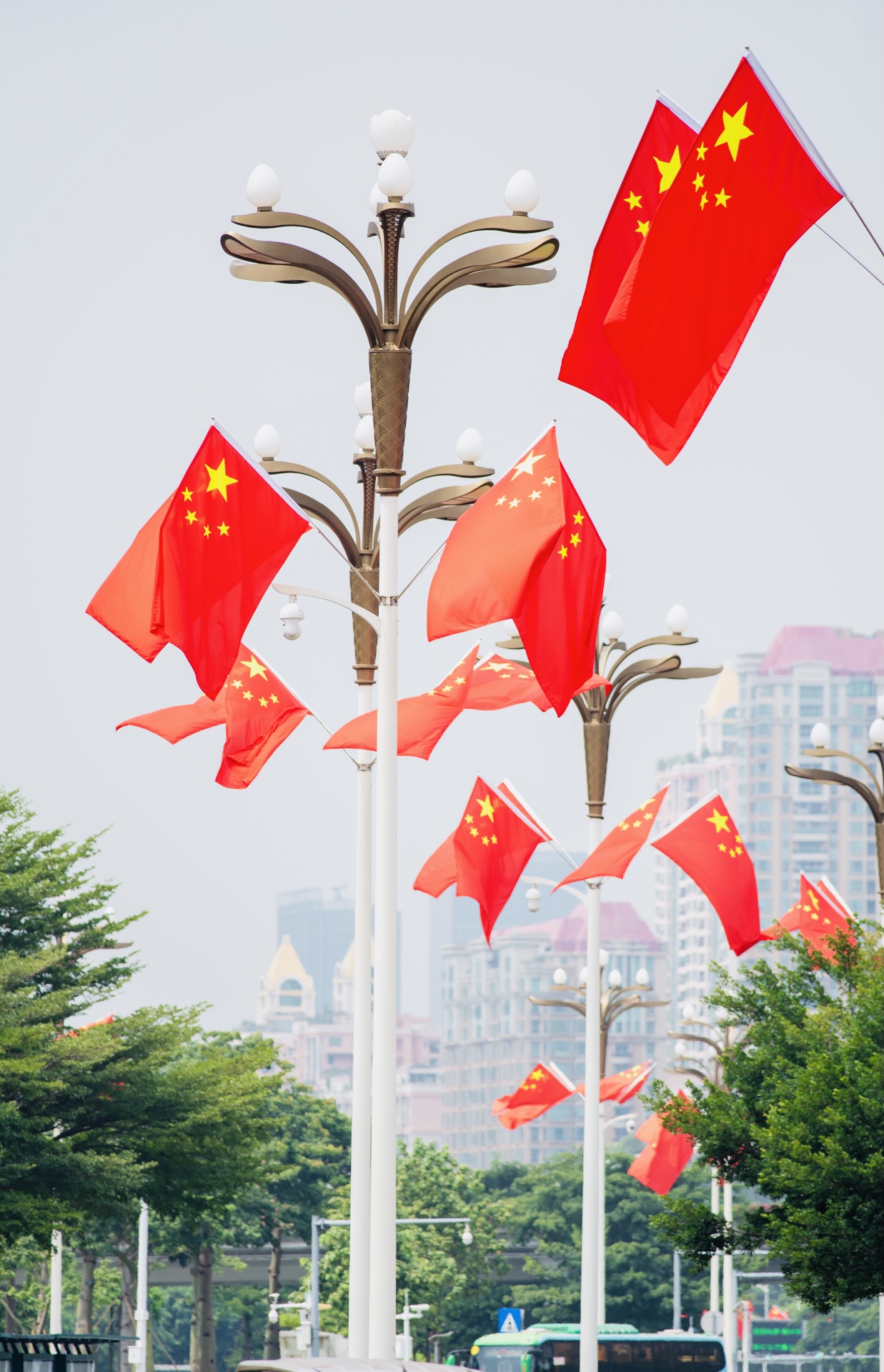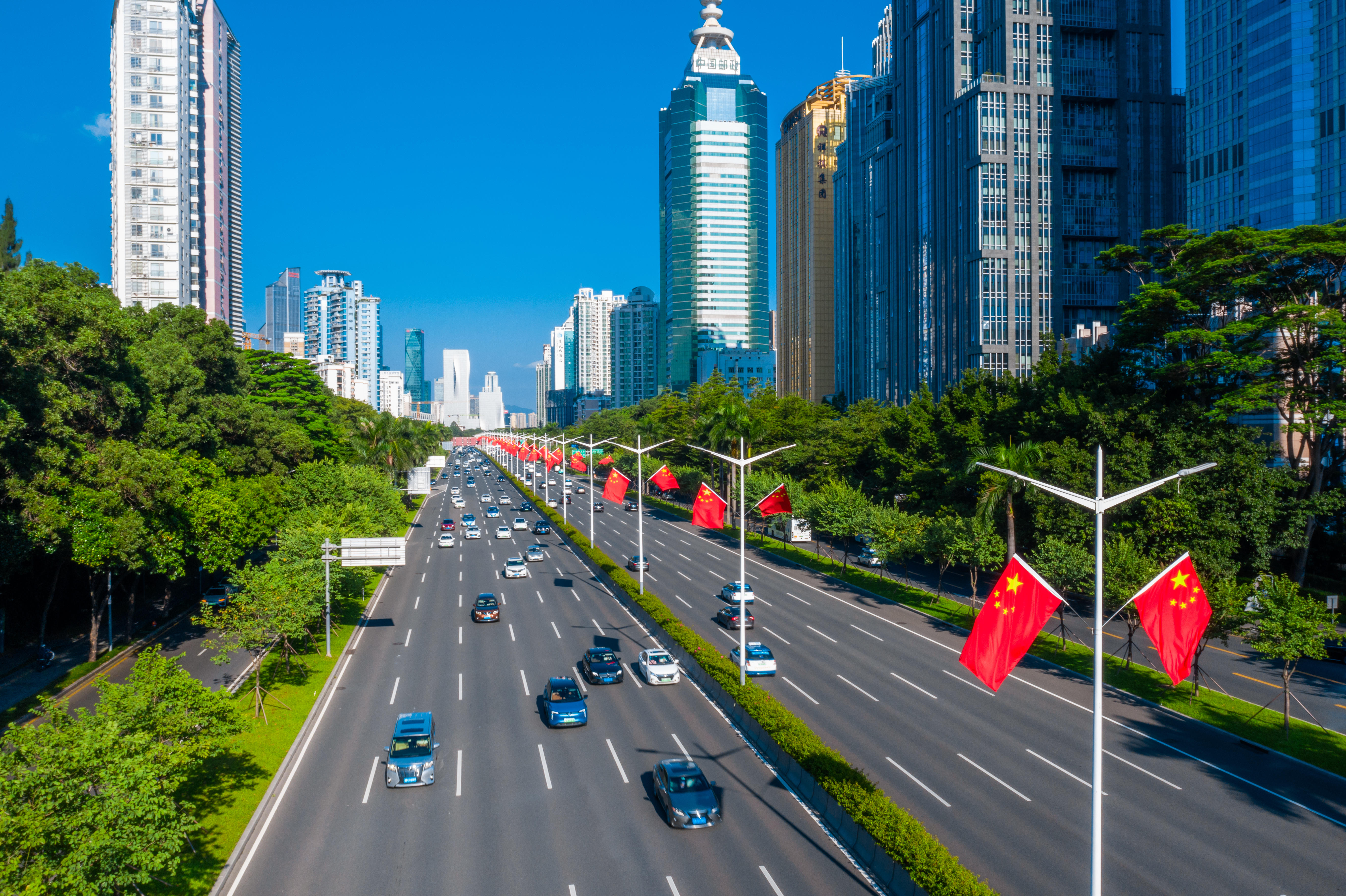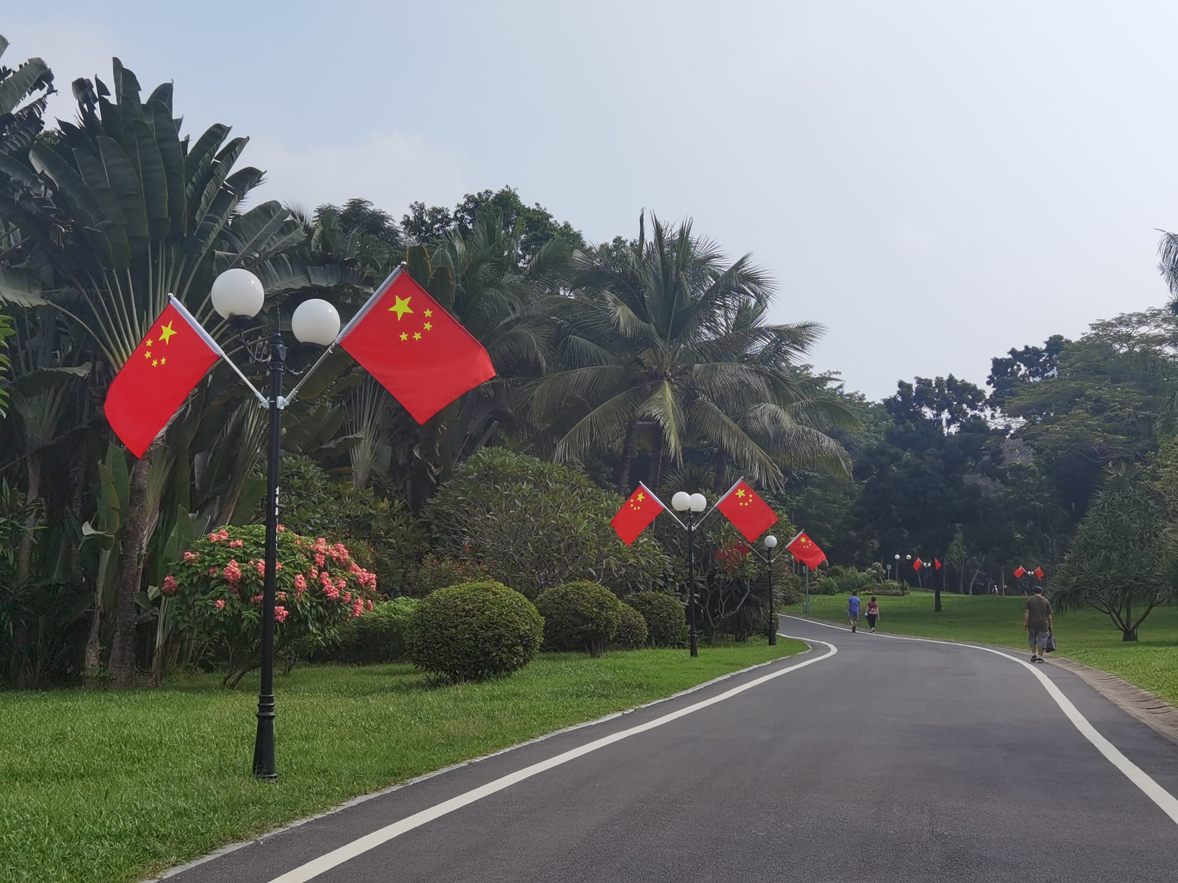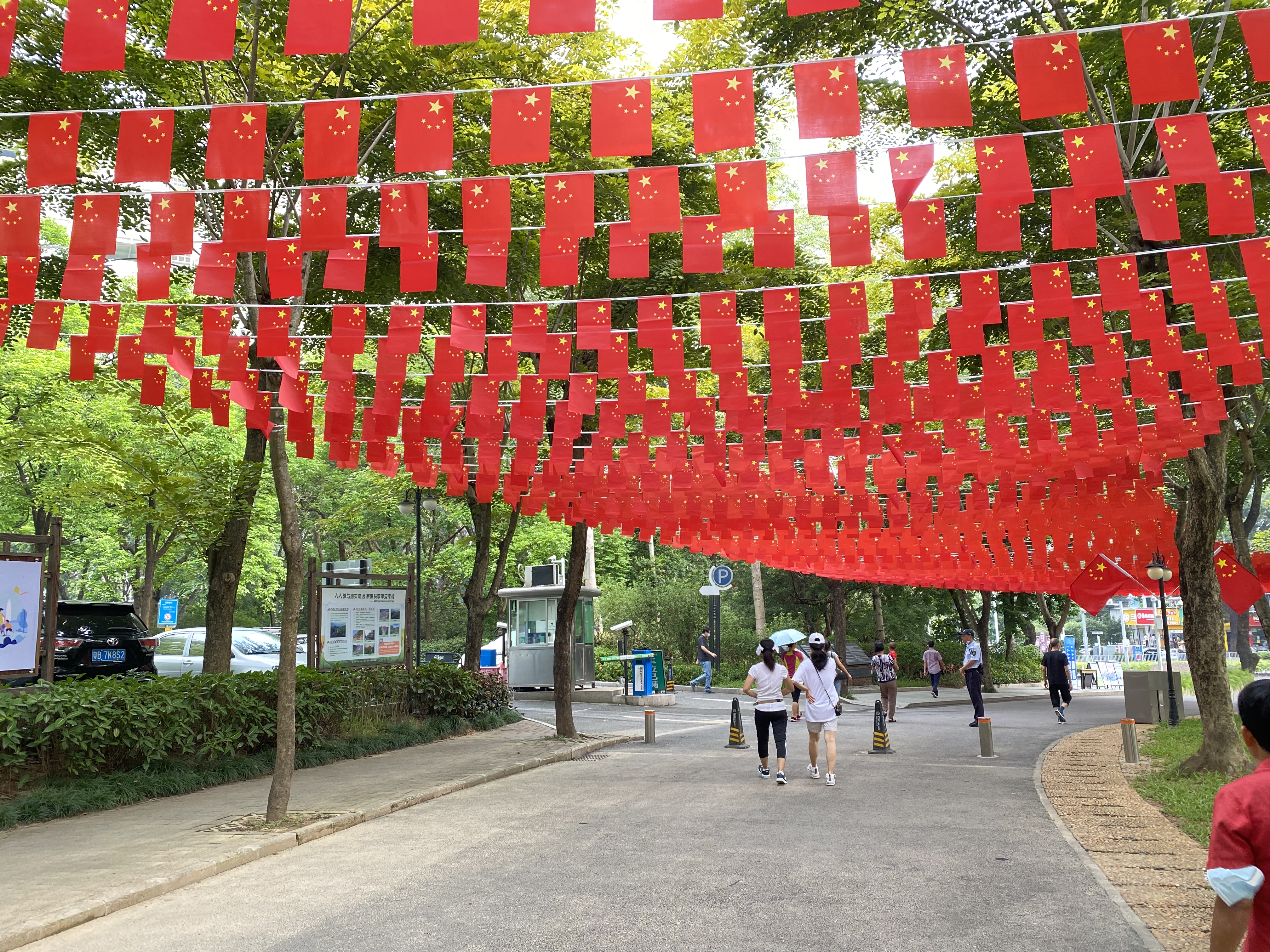 走在深南大道、北環大道、濱海大道、僑香路等城市主次幹道,隨處可見國旗飄揚,城管部門在全市500多條城市道路路燈桿上懸掛了近11萬面國旗,「中國紅」成為了最美主題色。