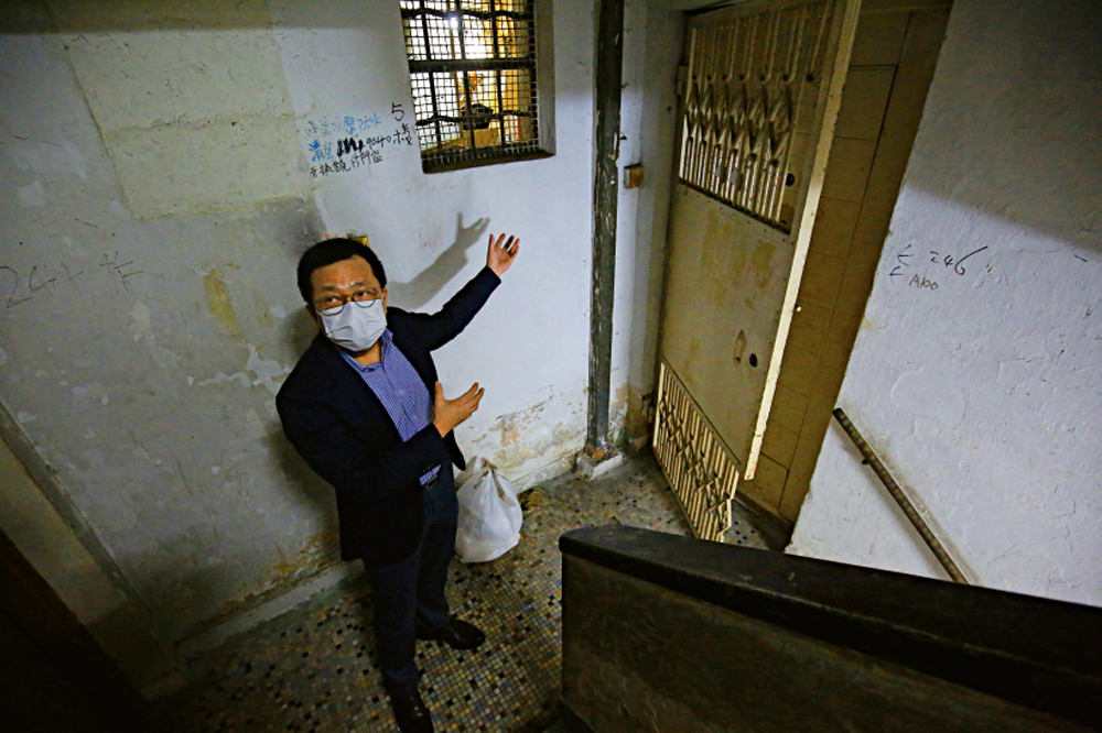 全港估計有逾22萬人居於劏房。劏房租務管制研究工作小組成員、測量師學會前會長何鉅業近日與大公報記者一起走訪深水埗多幢「三無」大廈,發現許多劏房都存在衞生、消防及結構安全隱患,例如有劏房單位鑿穿懷疑主力牆做窗,而大廈天台石屎嚴重剝落,導致鋼筋外露,恐影響結構安全;有單位內的通道不足一米,開門便即擋住了走火通道,一旦發生火警,勢必影響逃生;亦有大廈喉管亂駁,增加疫下病毒傳播風險。