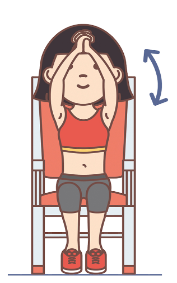 1. 坐在椅子上,雙手合握於大腿上,再慢慢舉起雙臂