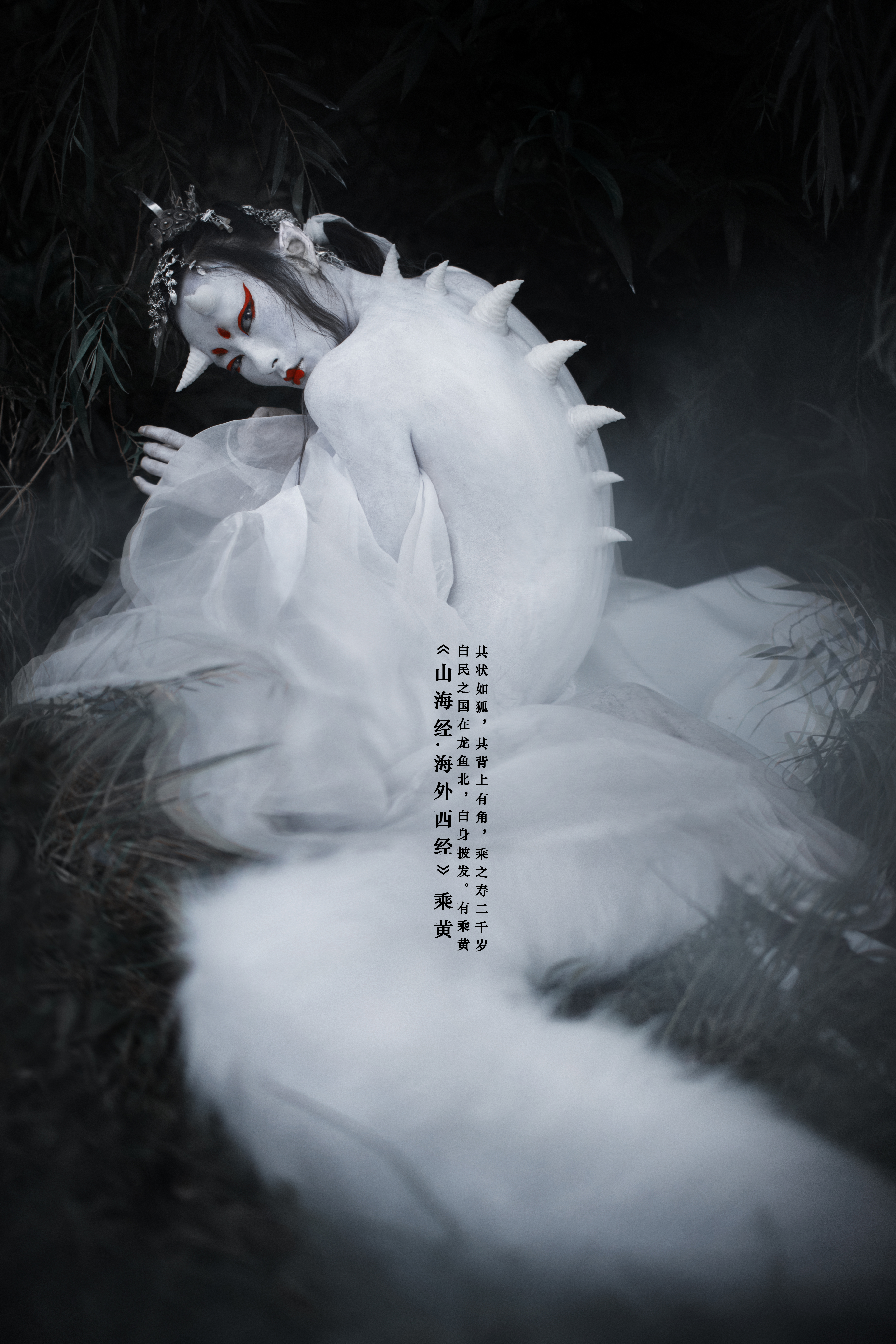 翻看她的作品,彷彿進入了一個充滿想象力的奇幻世界:淚泣珍珠的「鮫人」、白鹿帶水的「夫諸」、長尾青喙的「鴒䳩」、六足鳥尾的「鮯鮯之魚」……對她來說,困難在於既要讓模特對角色理解到位,又要用想象還原服裝道具,「有時拍照只需一小時,準備需要一個月」。