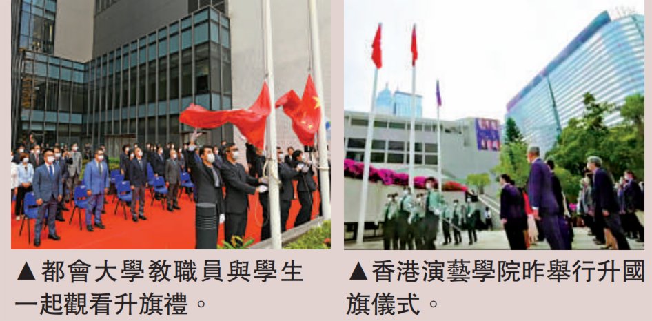 另外,香港演藝學院昨舉行升國旗儀式,國旗、區旗、學院院旗在國歌聲中徐徐升起。