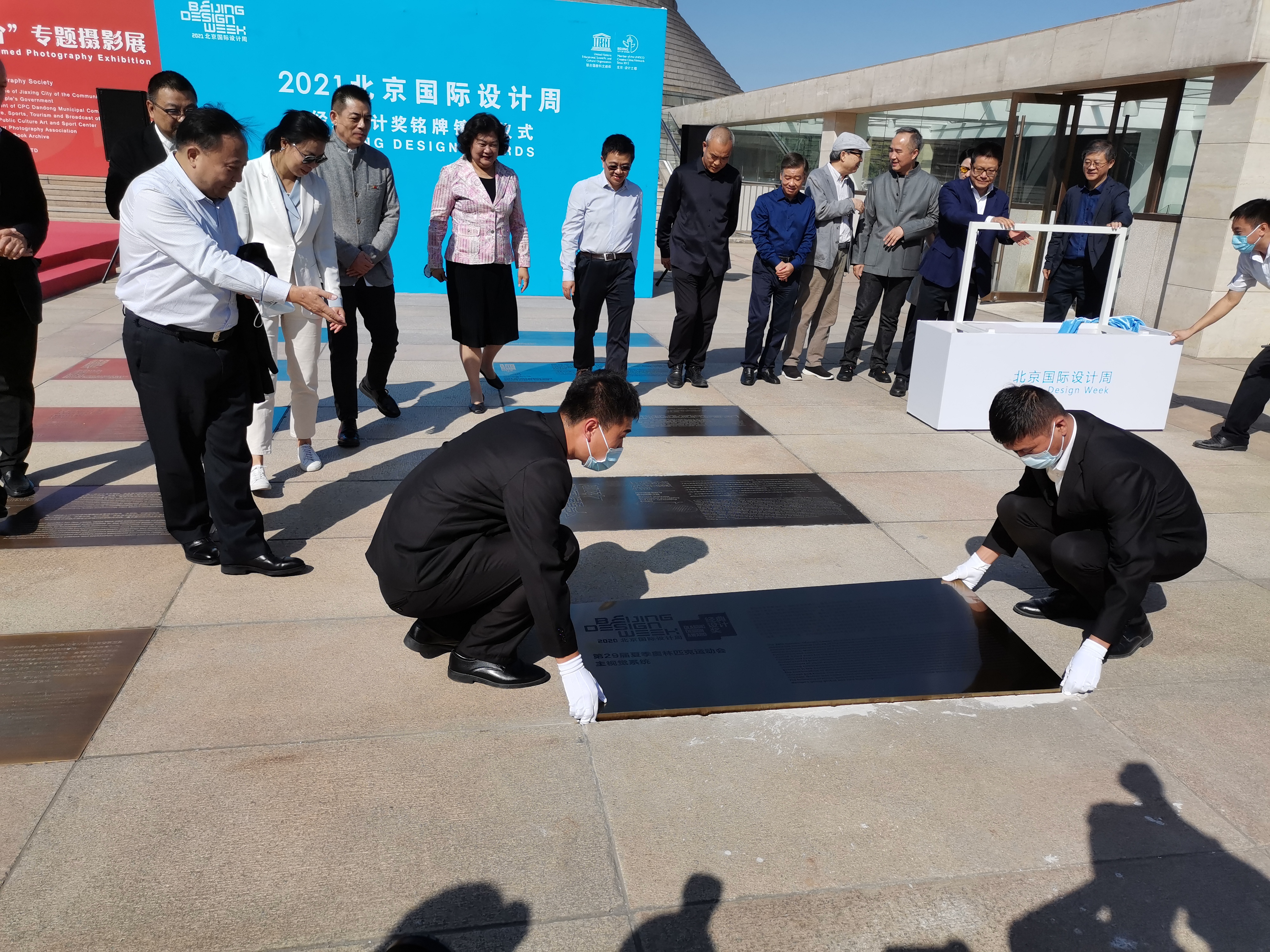 (大公文慧網 記者 馬曉芳)「第29屆夏季奧林匹克運動會主視覺系統」銘牌鑲嵌儀式1日在中華世紀壇舉行。2008北京奧運會獲北京設計周經典設計獎,其獲獎名銘牌國慶節當天正式鑲嵌至中華世紀壇青銅甬道。