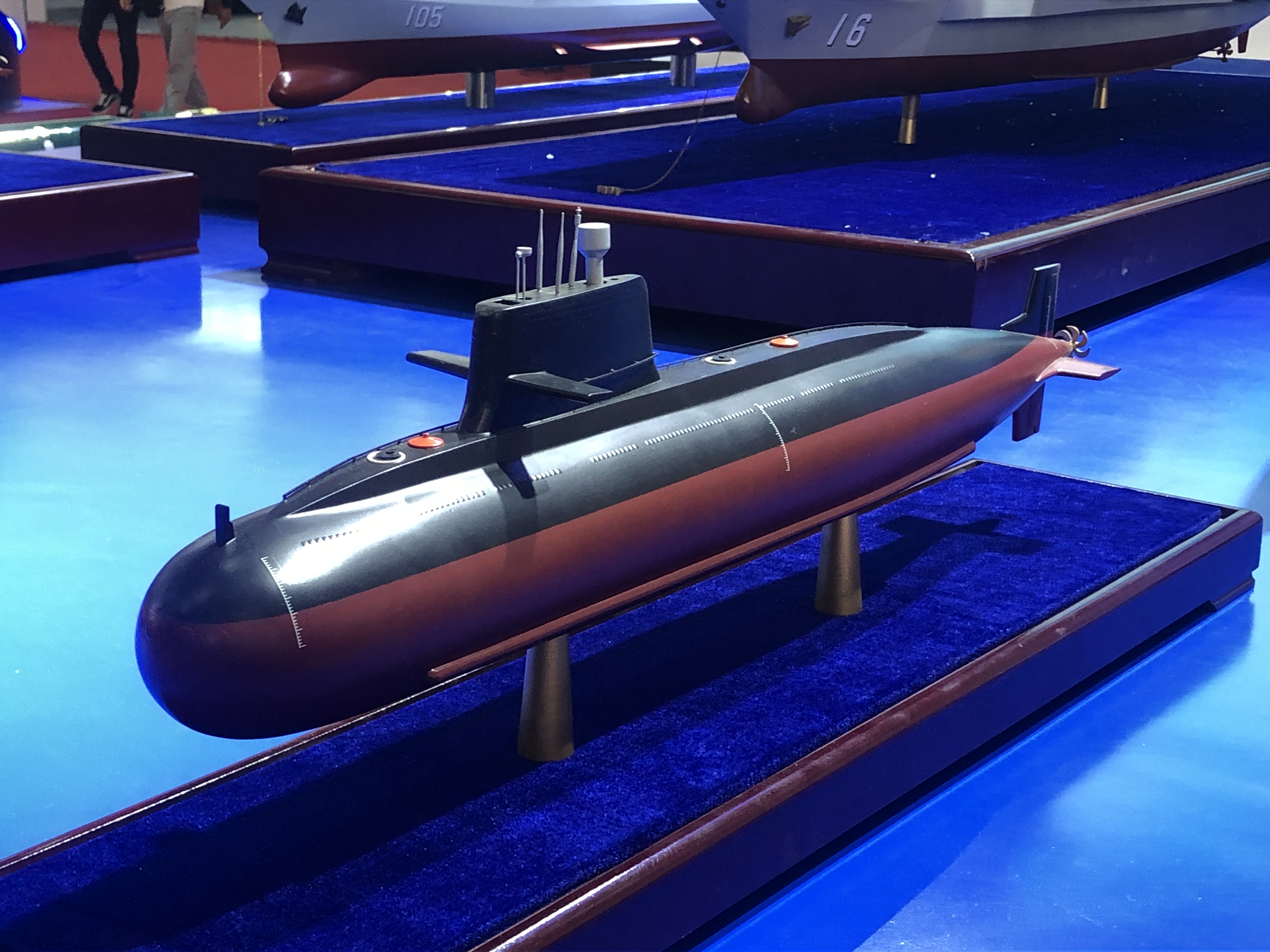 對於一直披着神秘面紗的中國戰略導彈核潛艇,經常成為外界討論的熱點話題。記者在航展現場看到,中國船舶集團將航母模型與其他軍艦模型一併展示的同時,也首次向外界展示了核潛艇,亦讓觀眾一飽眼福。