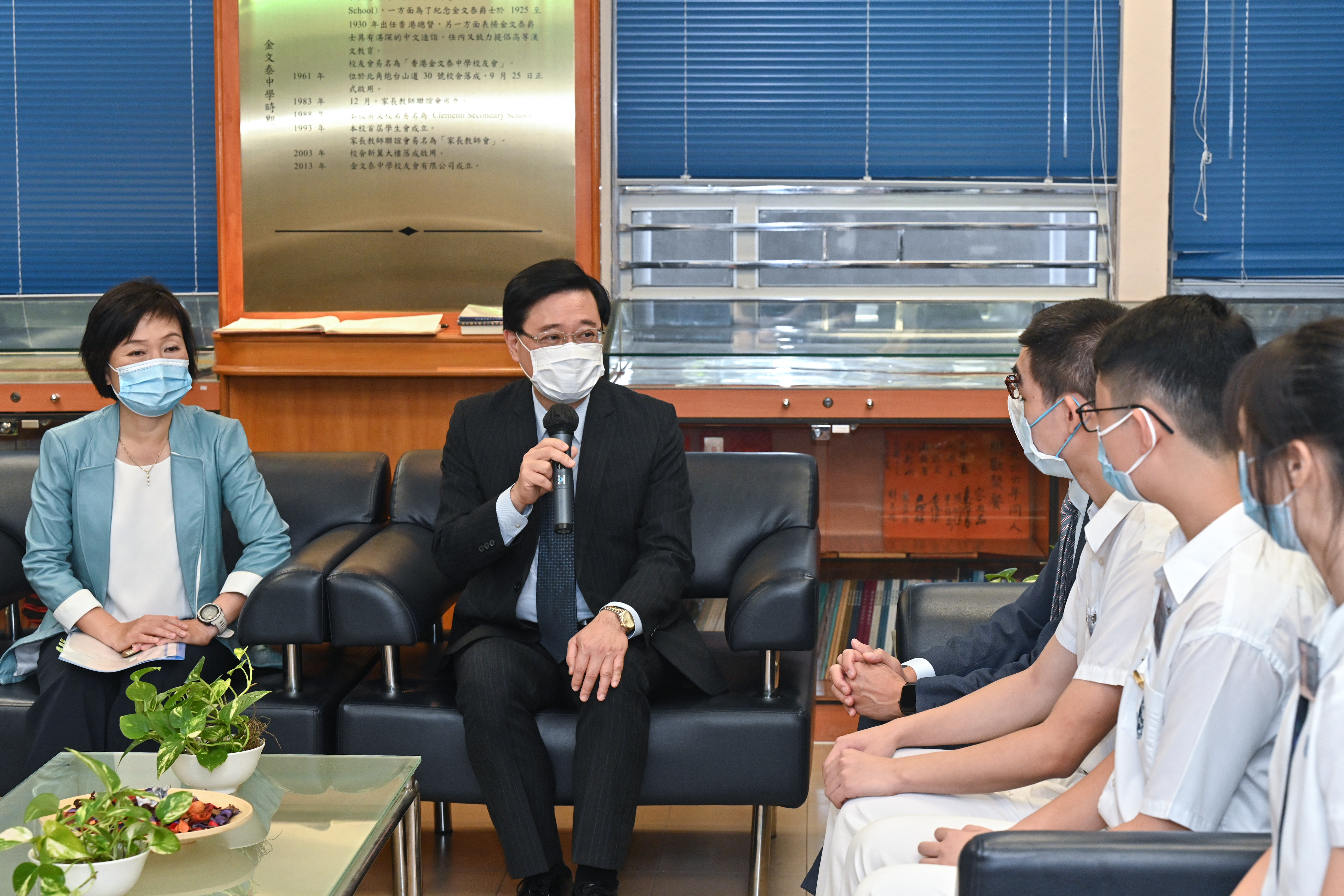 李家超其後聽了校長馮黎妙儀介紹該校落實國家安全學校行政指引及推動國家安全教育和價值觀教育的實踐經驗,並與老師交談,了解學校於課堂內外推行國家安全教育的進展,包括怎樣促進學校加強推動《憲法》《基本法》和國家安全教育。