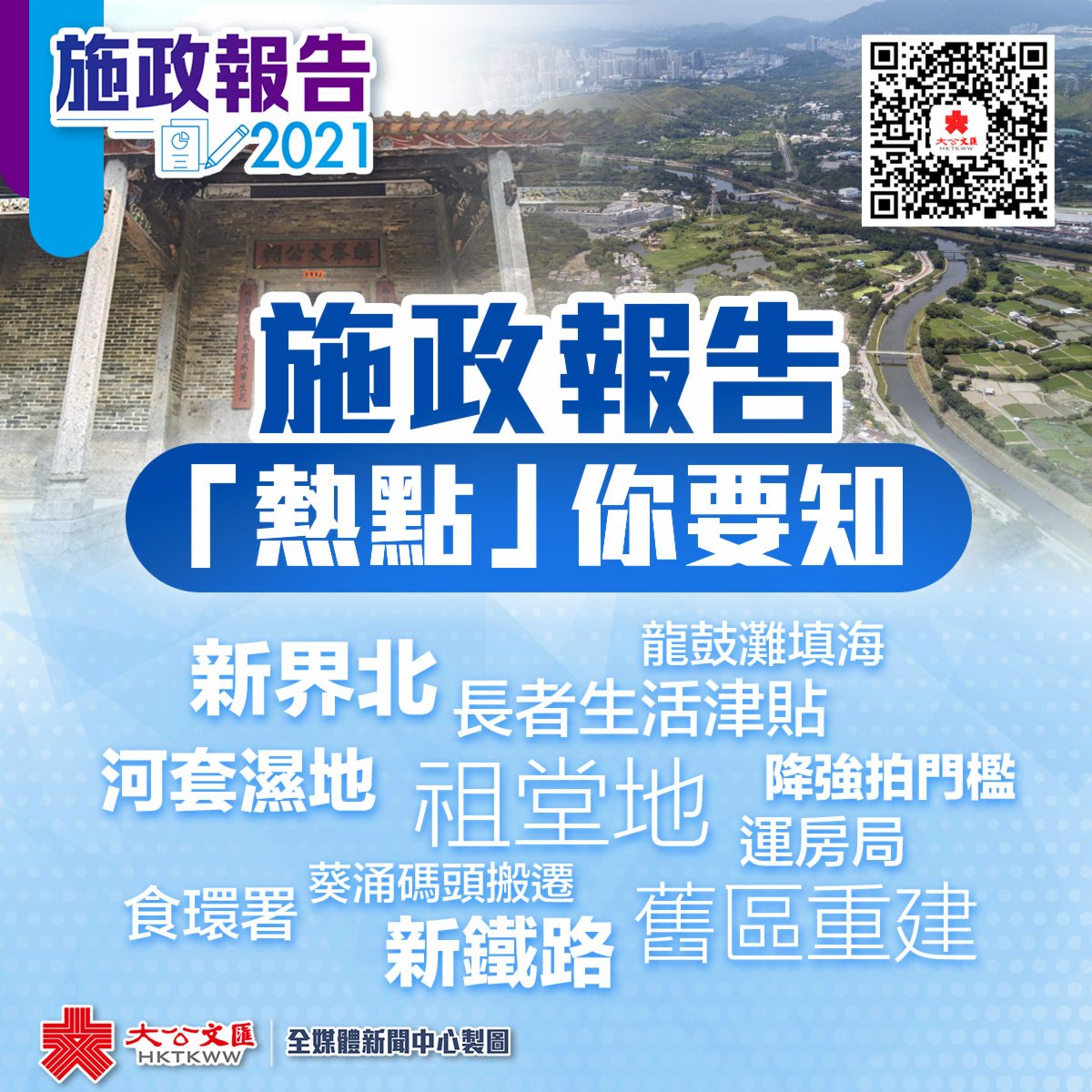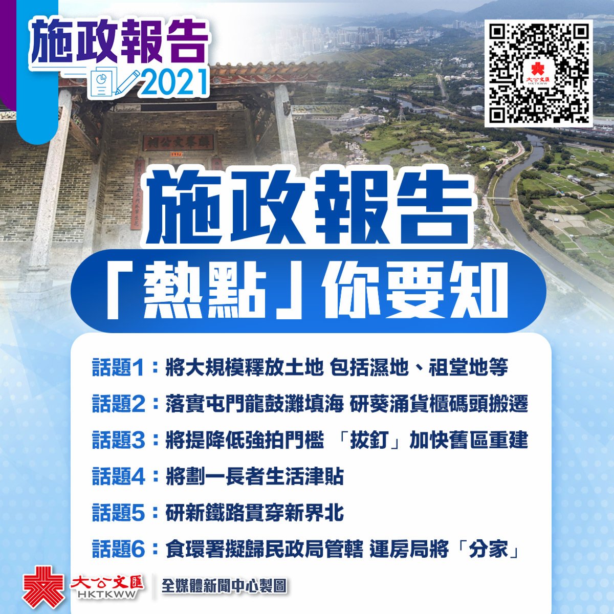 大公文匯全媒體報道,行政長官林鄭月娥周三(6日)上午11時將發表新一份施政報告。據了解,新一份施政報告涉及土地、房屋等多項議題,市民亦頗為關注。大公文匯全媒體為您整理了與施政報告有關的幾項「熱點」話題,快來睇下!