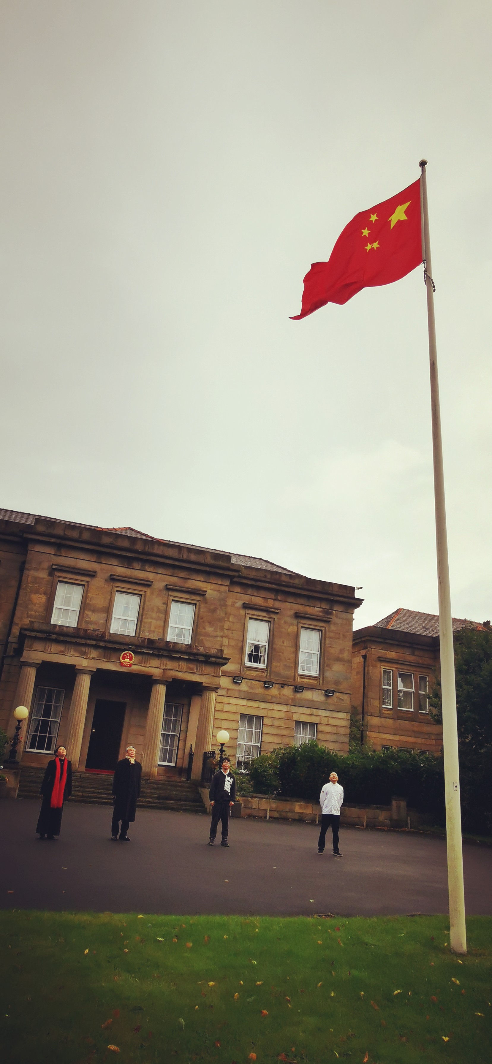 (大公文匯網記者 孫志)今年國慶,由於疫情原因,中國駐英國曼徹斯特總領事鄭曦原和夫人及工作人員共五人在官邸舉行了莊嚴肅穆的特殊升旗儀式。「眼睛凝望五星紅旗,手機播放着國歌,心中升騰起一股熱流。想到了作為一名中國外交官承擔的責任和使命。」鄭曦原告訴記者。