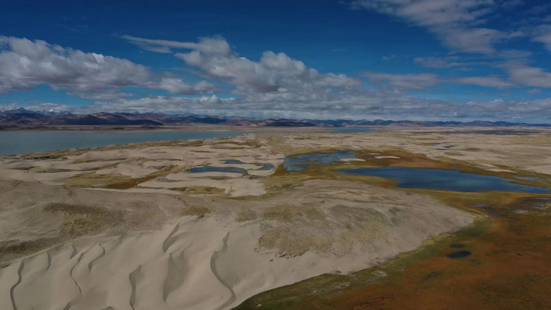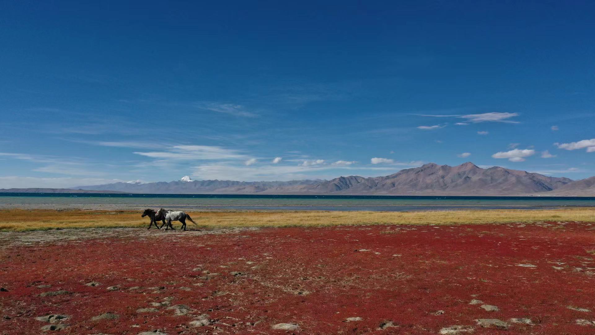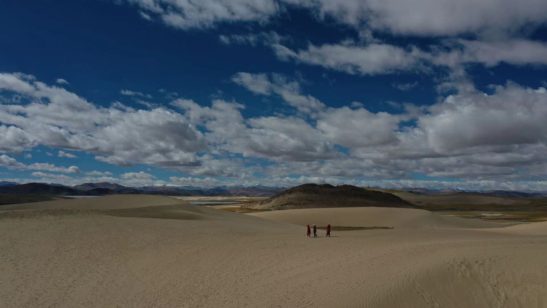 至於「景色壯麗」,筆者由踏入日喀則市轄下的仲巴縣開始便頓感其「壯」,令筆者忍不住停下車來放飛「兒子」(筆者的無人機)。在一大片濕地上,小湖泊星羅棋布,背景是西藏特有的藍天,仿如躍動的白雲,令人心醉。然而,The best is yet to come! 更好的陸續有來,再往前走,竟然在濕地旁邊出現一大片沙丘。再往前走,筆者透過「兒子」竟拍到有三位穿紅衣的女遊客在沙丘頂上拍照,映照了大自然的壯麗無垠和三人在其中的渺小而突出。北京的朋友在微信看到這些沙丘,便回應道:「我持大瓢坐沙丘,酌飲四野以散愁」。筆者更遐想,若有朋友作古代俠女打扮,在沙丘上舞動長劍,睥睨四方,然後長劍一揮,清光乍現,回眸一瞥;鏡頭「擦卡」拍下,一定傾倒萬千眾生,酷到「爆炸」。筆者一面開車,一面浮想聯翩,不禁吟哦起李白的詩:
