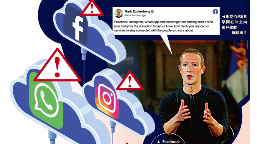 而在各大程式陸續恢復服務之後,Fb創辦人及首席執行官朱克伯格於5日早間,在平台上向廣大用戶致歉道:「Facebook、Instagram、WhatsApp和Messenger已經恢復運行。我為今天發生的故障道歉:我知道你們有多麼依賴我們的服務與你在乎的人保持聯繫。」