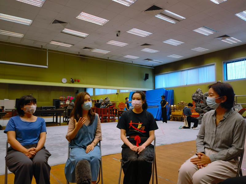 身穿練功服的梁心怡原是香港大學法律專業畢業生,在考取律師執照後,選擇到演藝學院進修粵劇表演,因為覺得「藝術和法律對社會同樣重要」。她談到,粵劇是香港傳統劇目,但需要更多導賞推廣和劇目創新,例如可以多增加英文字幕,方便外國人了解劇情,還可以學習廣州粵劇團的做法,對年輕人熟悉的動漫劇情等進行改編。學習琵琶的鐘詩玲坦言,香港粵劇觀眾數量很多,但從業不易,畢業後會面臨就業問題。參加座談的師生都關心和內地的交流,希望今後可以前往大灣區交流發展。
