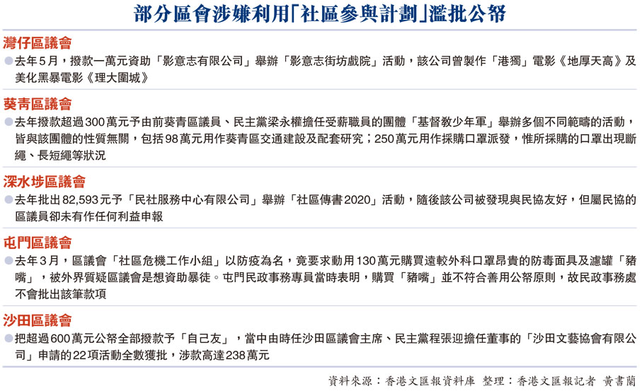 部分區會涉嫌利用「社區參與計劃」濫批公帑