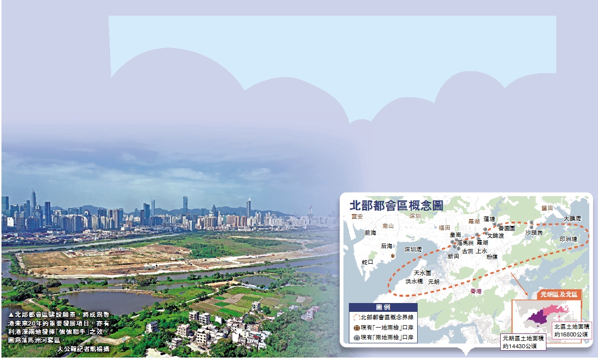 【大公報記者 龔學鳴、鄭文迪】施政報告提出發展「北部都會區」願景,開拓房屋和科技發展用地。該份歷來佔地最大的規劃藍圖,橫跨20年發展,政府能否加快土地供應、可否承擔巨額開發土地成本、如何平衡發展與保育等,成為市民及議員的關注焦點。