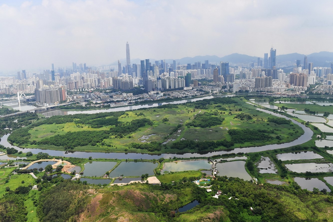 站在深圳福田長富金茂大廈的最高層,舉目遠眺,深圳河的對面,廣袤的濕地與綠油油的草地連成一片,生機勃勃。此情此景,令人不禁哼起「小河彎彎向南流,流到香江去看一看」的歌聲。數百年來,一衣帶水的深圳與香港都是唇齒相連,如今,在深圳市福田區南部與香港特別行政區接壤處,一個新的合作區——面積3.89平方公里的河套深港科技創新合作區正在崛起。其中,深圳河南側的港方園區面積約0.87平方公里;深圳河北側的深圳園區(包括皇崗口岸片區和福田保稅區)面積3.02平方公里。
