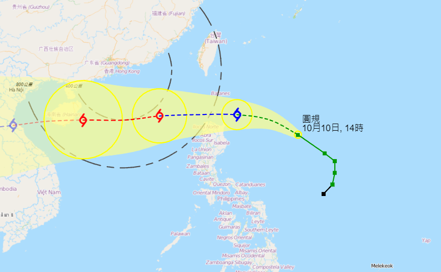 目前,「圓規」位於菲律賓以東海域,集結在馬尼拉之東北偏東約810公里,目前強度為熱帶風暴,中心附近最高持續風力為每小時75公里,預料向西北移動,時速約22公里,移向呂宋海峽。