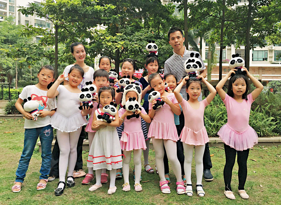 (香港文匯報 記者 向芸)在四川都江堰市幸福街道綜合文化活動中心門口,一隻長着兔耳朵、身穿藍白相間套裝和紅色板鞋的「熊貓」,坐在台階上向過往行人揮着手。從2004年開始,港人施美景帶着自己原創的國潮品牌公仔「巴布熊貓」走南闖北,希望「巴布熊貓」能走向全球,用世界語言去傳遞中國文化、講好中國故事。