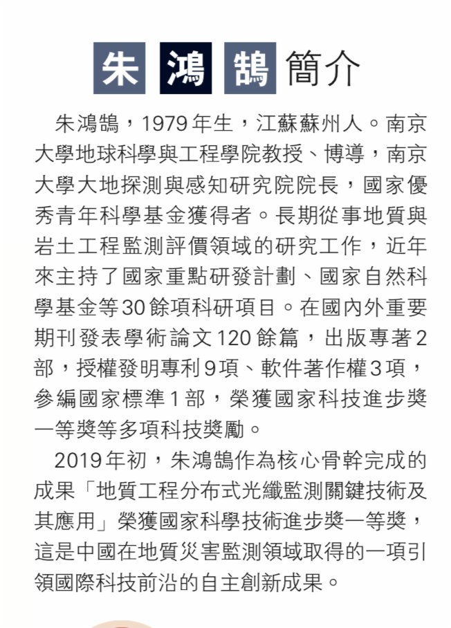 (香港文匯報記者 陳旻)1966年,華裔物理學家高錕開創性地提出了用光導纖維傳輸信息的構想,開啟光纖通信元年。如今,光纖已進入千家萬戶,成為現代通信的主要傳輸介質。鮮為人知的是,光纖還能夠作為大地的「感知神經」,實現對滑坡災害的實時監測預警。這便是南京大學大地探測與感知研究院院長朱鴻鵠的主要科研目標。「我們的研究必須始終與國家需求緊密結合,以解決實際問題為導向,努力實現科技自立自強。」十餘年來,朱鴻鵠教授團隊圍繞滑坡光纖監測開展了深入研究,在感測光纜與滑坡體界面耦合力學建模、地下深部滑移面辨識、滑坡-管線相互作用等方面取得了一批重要成果。 「這是一片藍海,只要能啃下硬骨頭,你就站在科學最前沿。」在香港讀博期間,導師的這句鼓勵,一直是朱鴻鵠前行的明燈。