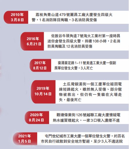 隨着香港工業式微,不少工廈紛紛改作商業用途,甚至有業主為有利可圖,將工廈單位違規改造成劏房,錯綜複雜的環境和部分工、商、住混合的運作模式,大量增加的人口隨時超出建築原本的消防容量,造成安全隱患。