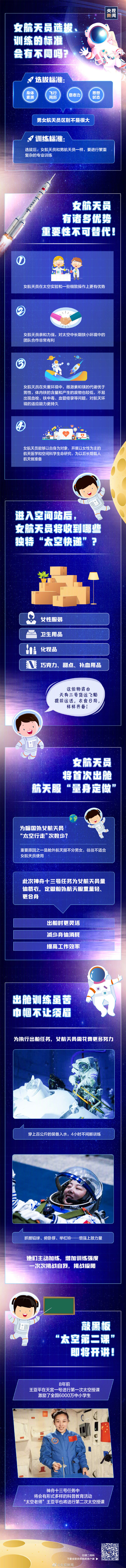 大公文匯全媒體報道,神舟十三號發射圓滿成功,王亞平成為中國空間站首位女航天員。為迎接女航天員,中國空間站做了哪些準備?女航天員在太空中有哪些優勢?她們的選拔標準、訓練標準又有何不同?一圖可知。