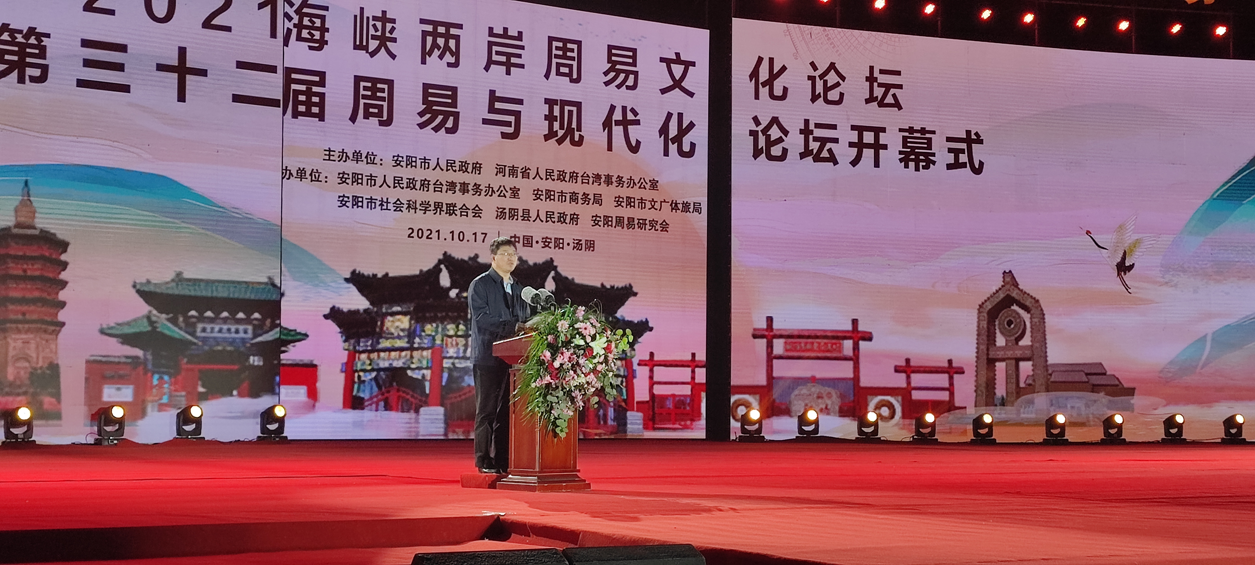 (大公文匯網 記者 馮雷)10月17日晚,2021海峽兩岸周易文化論壇暨第三十二屆周易與現代化論壇在河南省安陽市湯陰縣開幕,來自海峽兩岸及海外的易學專家學者、台商經貿考察團、當地易學愛好者等2000餘人在現場參加了開幕式,台港澳和海外知名易學專家、其他易學專家學者愛好者約10萬人通過網絡直播進行觀看。