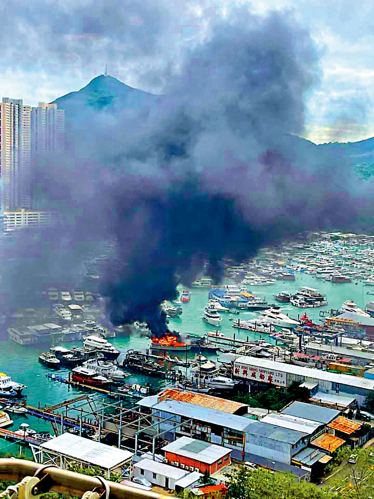 (大公報 記者 黃浩輝)今年6月香港仔避風塘曾發生「火燒連環船」事件,令人關注到避風塘泊位雜亂無章,易生事故等問題。昨晨一艘停泊在鴨脷洲海傍道對開避風塘、正進行翻新工程的遊艇突然起火,火光熊熊,濃煙直攻半空,更一度傳出爆炸聲,附近停泊船隻為免殃及池魚,紛紛駛走,消防列作二級火警。消防調查後,相信是船上電線短路肇禍,起火原因無可疑。