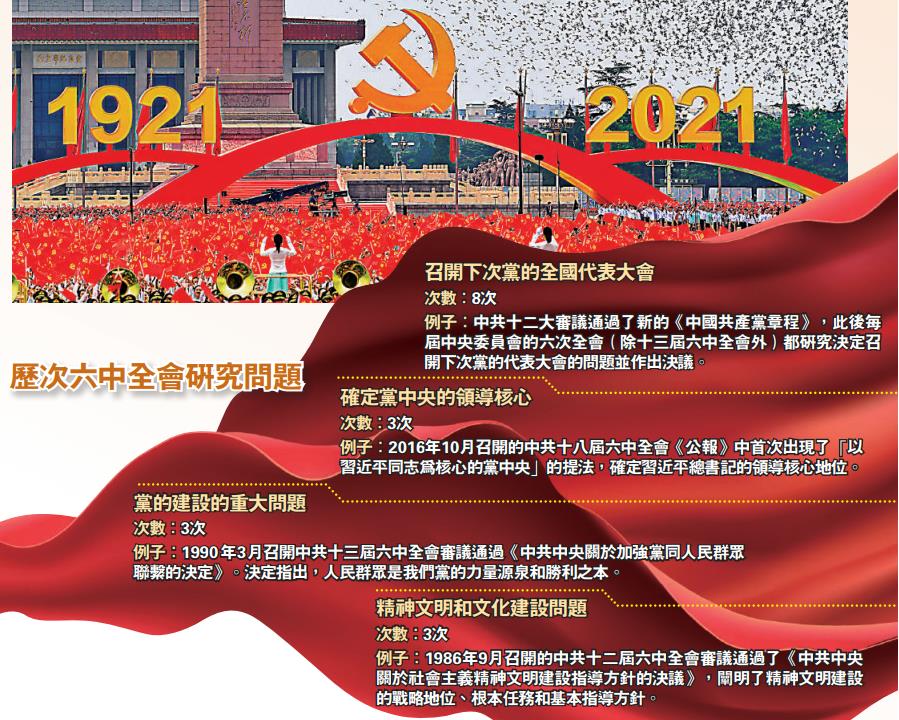 中共中央政治局10月18日召開會議,研究全面總結黨的百年奮鬥重大成就和歷史經驗問題。中共中央總書記習近平主持會議。會議決定,中國共產黨第十九屆中央委員會第六次全體會議於11月8日至11日在北京召開。中共中央政治局聽取了《中共中央關於黨的百年奮鬥重大成就和歷史經驗的決議》稿在黨內外一定範圍徵求意見的情況報告,決定根據這次會議討論的意見進行修改後將決議稿提請十九屆六中全會審議。