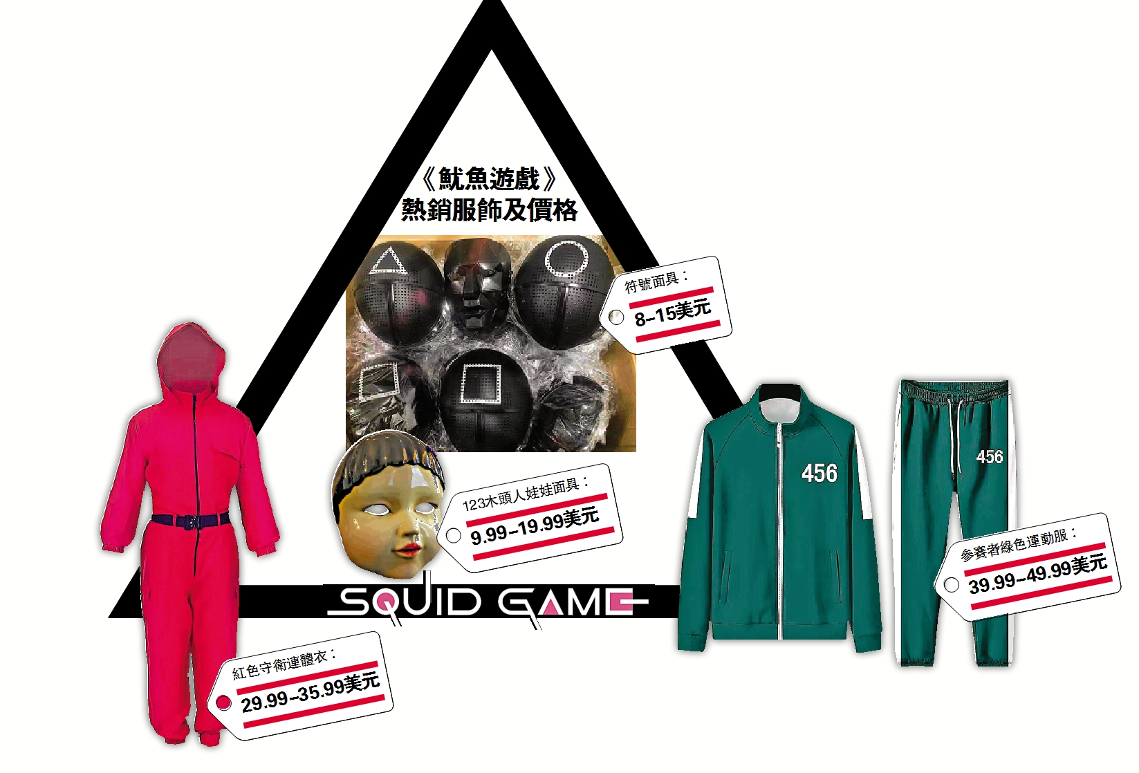 (大公報 記者 俞晝)456位參賽者,為了456億韓圜獎金賭上性命……憑藉緊張刺激的劇情,韓劇《魷魚遊戲》(Squid Game)風靡全球,在超過90個國家和地區登上Netflix熱門排行榜榜首。隨着萬聖節的臨近,劇裏的同款服飾道具成為粉絲今年的裝扮首選。嗅覺敏銳的中國商家早已提前入場,他們日夜不停地開動着發出隆隆聲的機器,將一批又一批的單品打包裝箱,賺得盤滿缽滿。