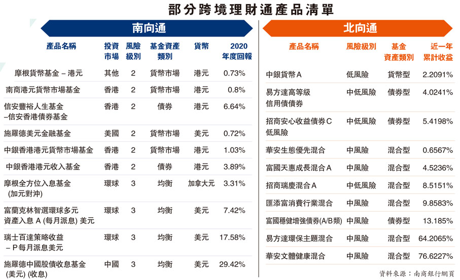 另外,為迎接理財通,亦有銀行為客戶提供人民幣優惠。南商副總裁鄭建崗表示,南商集團於兩地精選超過400隻理財產品予客戶選擇,就「南向通」產品而言,有約7成基金產品屬於「固收+」策略,並且大部分屬環球投資配置策略,有助內地投資者分散投資及發掘境外投資機遇,該行亦為所有客戶新兌換的人民幣提供7天定存年息高達13.88厘的優惠,為客戶做好人民幣以及跨境理財部署。