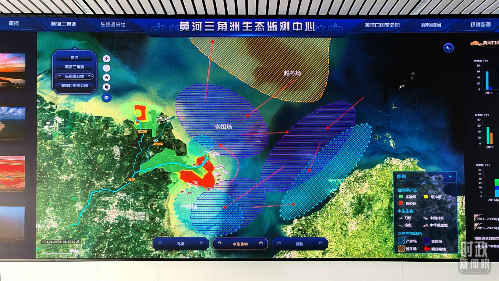 生態監測中心主任劉靜告訴《時政新聞眼》,中心正在合作研究國家重點保護物種,如丹頂鶴、東方白鸛等的種群數量、分布位置、活動行為,同時還對當地生態系統格局、外來入侵物種進行全面觀測。