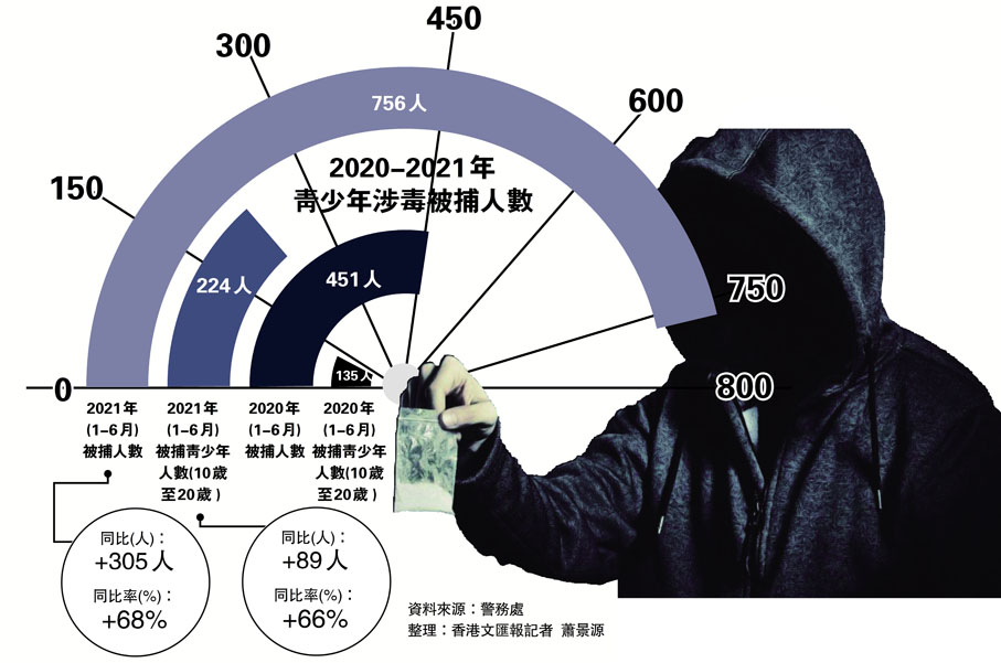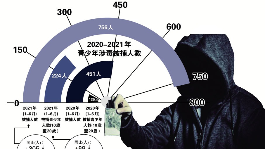灣仔警區助理指揮官(刑事)何兆東署理警司昨日表示,毒販利用青少年「搵快錢」心態,以金錢利誘販毒,警方採取「零容忍」態度,會持續進行打擊。根據資料,今年首兩季警方拘捕涉犯毒人數為756人,較去年同期增加305人,升幅約68%,當中10歲至20歲的青少年佔224人,較去年同期增加89人,升幅約66%。