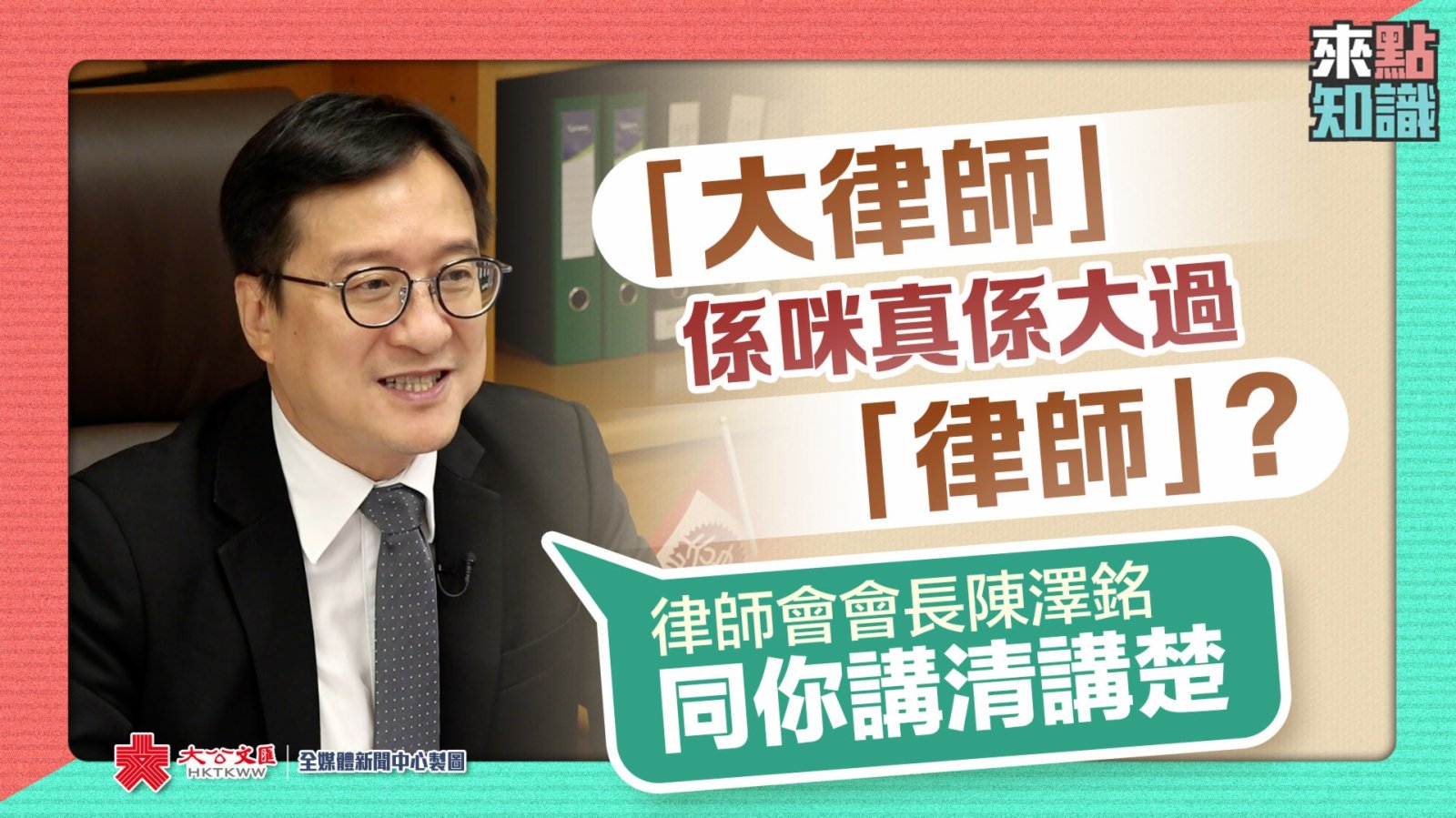 大公文匯全媒體報道,在香港,有兩種律師提供法律服務,分別是大律師和律師。那大律師有個「大」字在頭,真的比律師「大」嗎?大公文匯全媒體中心今次邀請到香港律師會會長陳澤銘,為各位詳細講解「大律師」和「律師」之間的差別。