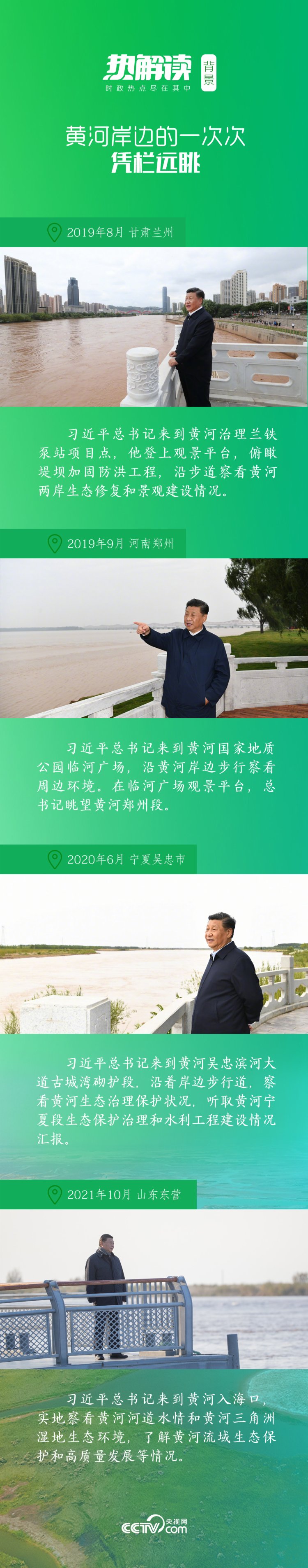 甘肅蘭州、寧夏吳忠、山西太原、河南鄭州和蘭考、山東東營……黨的十八大以來,總書記多次實地考察黃河流域生態保護和發展情況,為民族永續發展的千秋大計傾註心血。