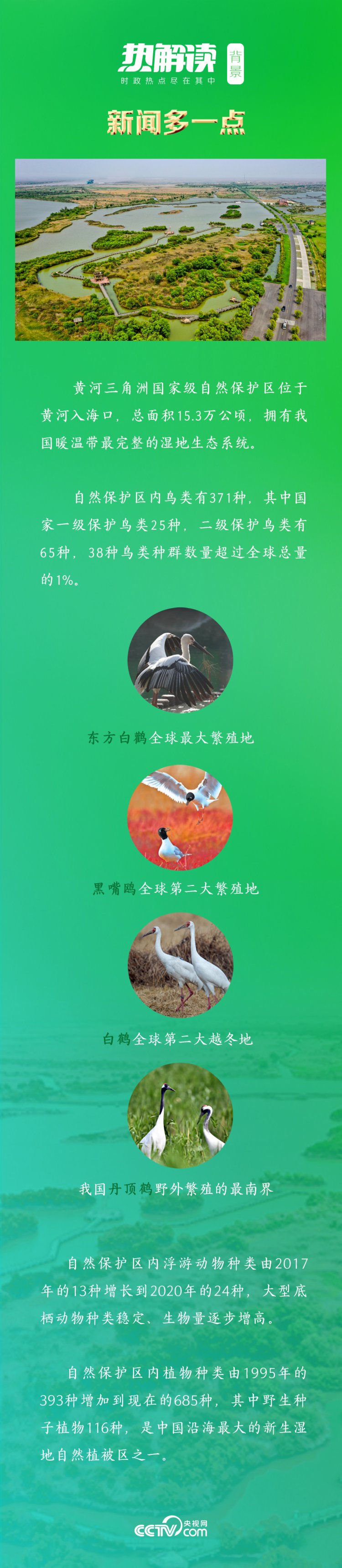 今日的黃河三角洲自然保護區生物多樣性更加豐富,野生動物、植物分別達到1630種、685種。全球首批「國際濕地城市」的稱號,是對東營市保護和修復黃河流域生態環境的褒獎。