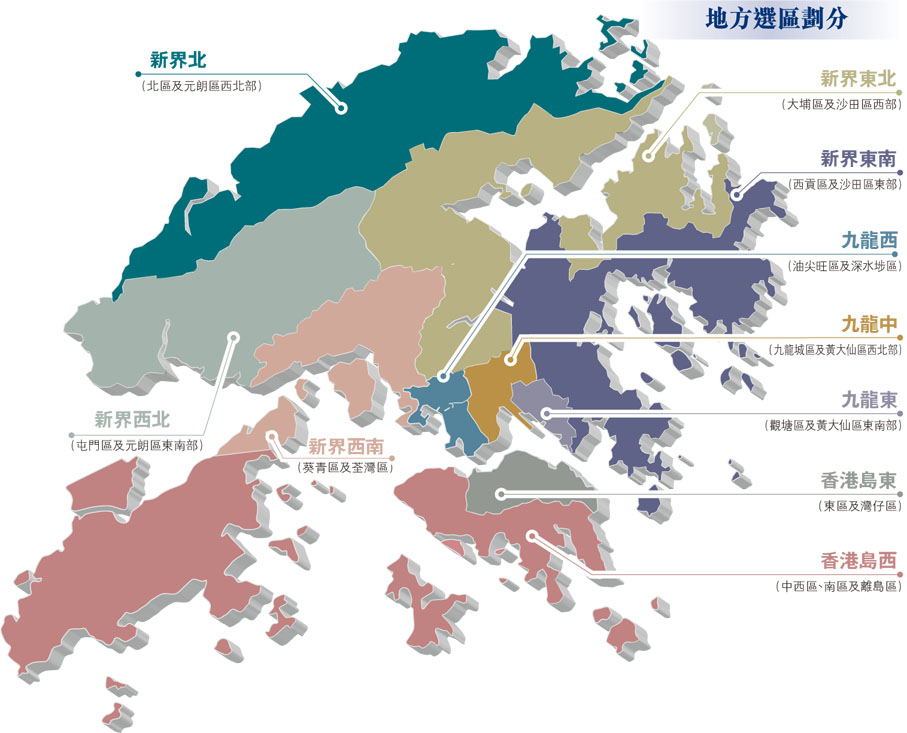選區劃界:設10個地方選區,每個選區產生2名立法會議員