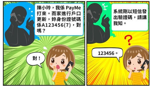 大公文匯全媒體報道,警方今日(26日)在社交平台發文表示,近日接獲有市民收到聲稱銀行職員來電,要求更新支付平台「PayMe」 戶口,否則戶口將被凍結。期間,對方會準確說出該市民的姓名及身份證號碼,以增加可信性。若市民按指示透露剛收到的「一次性密碼」短訊以及「交易密碼」,騙徒便會隨即騎劫其「PayMe」帳戶,並將餘額轉走。