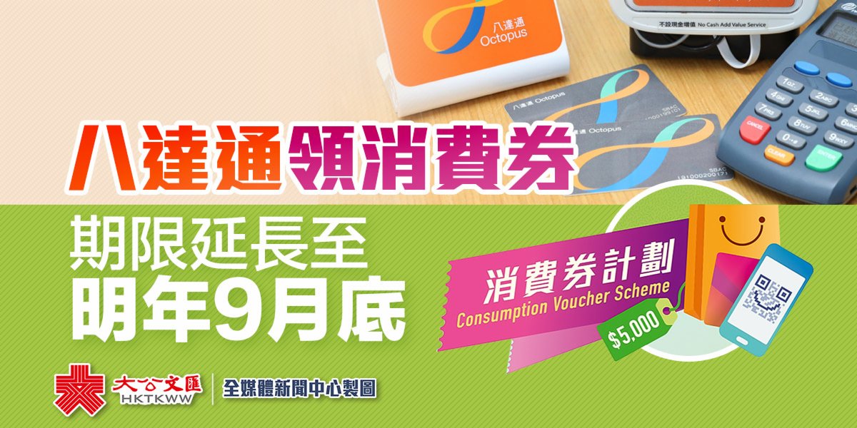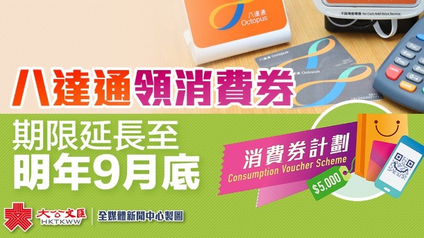 大公文匯全媒體報道,政府今日(26日)公布,延長八達通用戶拍卡領取消費券的期限至明年9月底。
