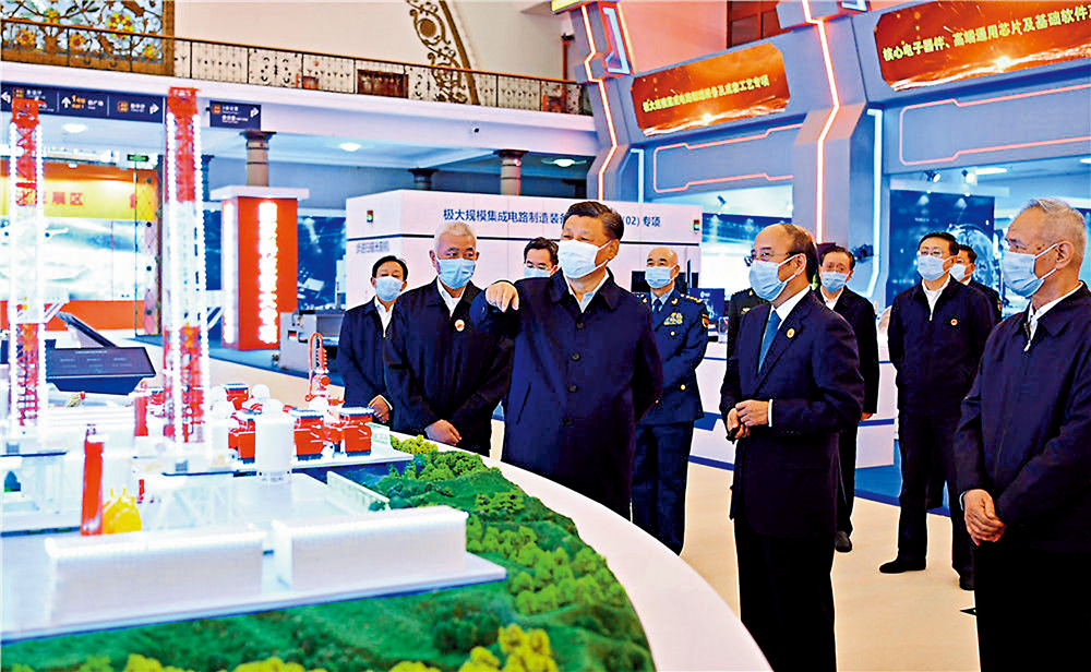 面向世界科技前沿,展覽重點展示「九章」量子計算原型機、第二次青藏高原綜合科考研究、「天機」類腦芯片等基礎前沿重大突破以及散裂中子源、「慧眼」衛星等科學裝置。面向經濟主戰場,重點展示國家新一代人工智能開放創新平台、「京華號」國產最大直徑盾構機等。面向國家重大需求,重點展示中國空間站模型、火星車、嫦娥五號、「奮鬥者」號全海深載人潛水器、集成電路裝備、全球首個第四代核電高溫氣冷示範堆、「國和一號」核電機組等國之重器。面向人民生命健康,重點展示一體化全身正電子發射/磁共振成像裝備、無人植物工廠水稻育種加速器以及「科技抗疫」「科技冬奧」的最新成果……一件件實物、一個個模型生動詮釋着「十三五」期間我國科技創新取得的重大進展和突出成就,習近平等領導同志仔細觀看,認真聽取工作人員講解並詢問有關情況。