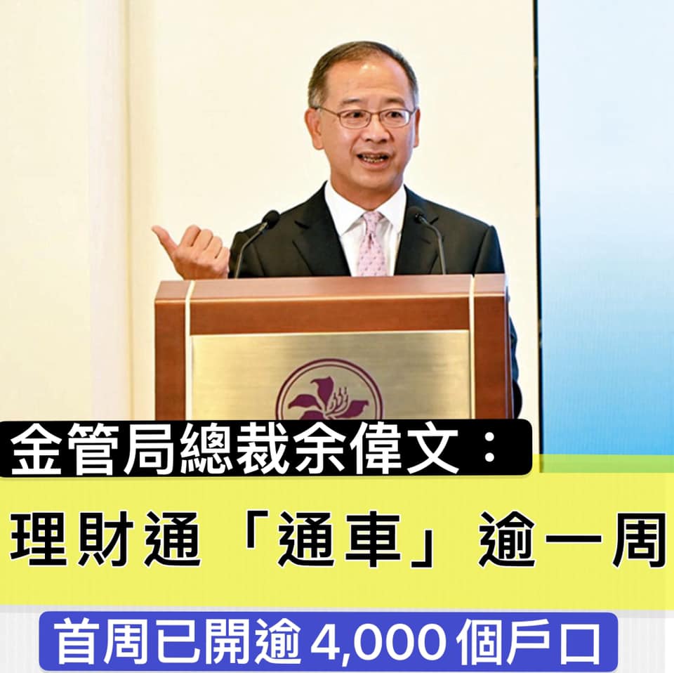 大公文匯全媒體報道,跨境理財通開展業務逾一星期,金管局總裁余偉文接受電台訪問時表示,理財通初步反應不錯,查詢非常多,南向及北向通首周共開設逾4,000個戶口,其中北向通佔逾2000個,南向通就有近2000個,兩邊大致平衡。