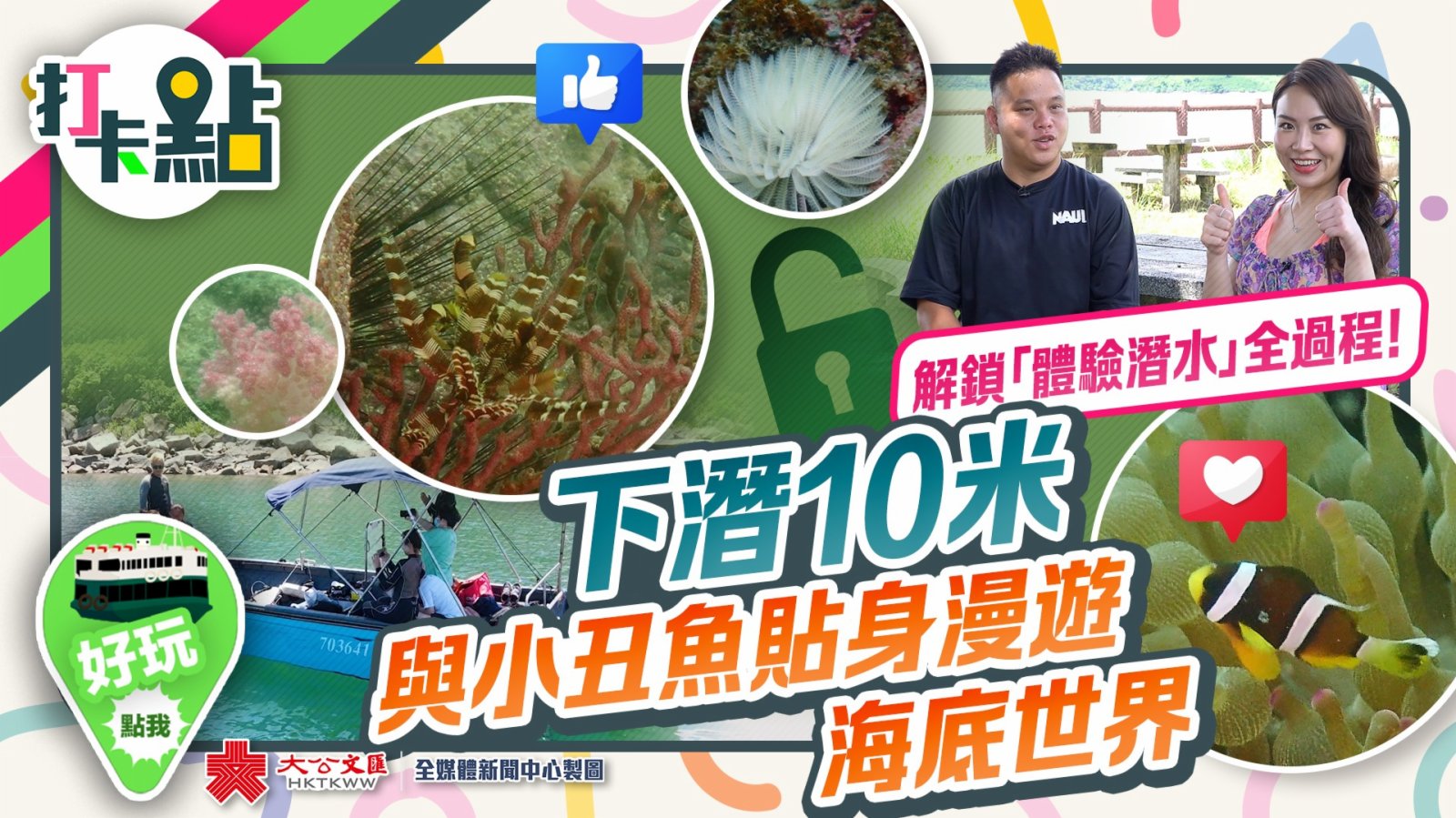 大公文匯全媒體報道,香港海域擁有多樣性的生態和物種,吸引很多探險者潛入海底一探奧秘。不過在香港,未考潛水證絕對不可以獨自出海潛水!今集我們跟着卓俊會潛水學院的教練們,一起去打卡香港海洋保護區——海下灣,解鎖未考潛水證也能玩的「體驗潛水」。由教練一對一牽引下,不知不覺間下潛10米,與小丑魚、水母、珊瑚等近距離接觸,奇幻又治癒。