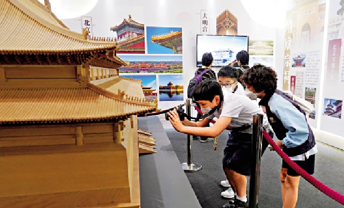 【大公報記者龔學鳴(文) 梁堅(圖)】「哇,這個就是太和殿,好雄偉壯觀!」「時代精神耀香江」之大國建造主題展上,持續傳來少年的驚嘆聲。展覽呈現出我國古代與現代的偉大建築,吸引了本港多間中小學組織數百名學生到場觀展,連日來場面非常熱鬧。