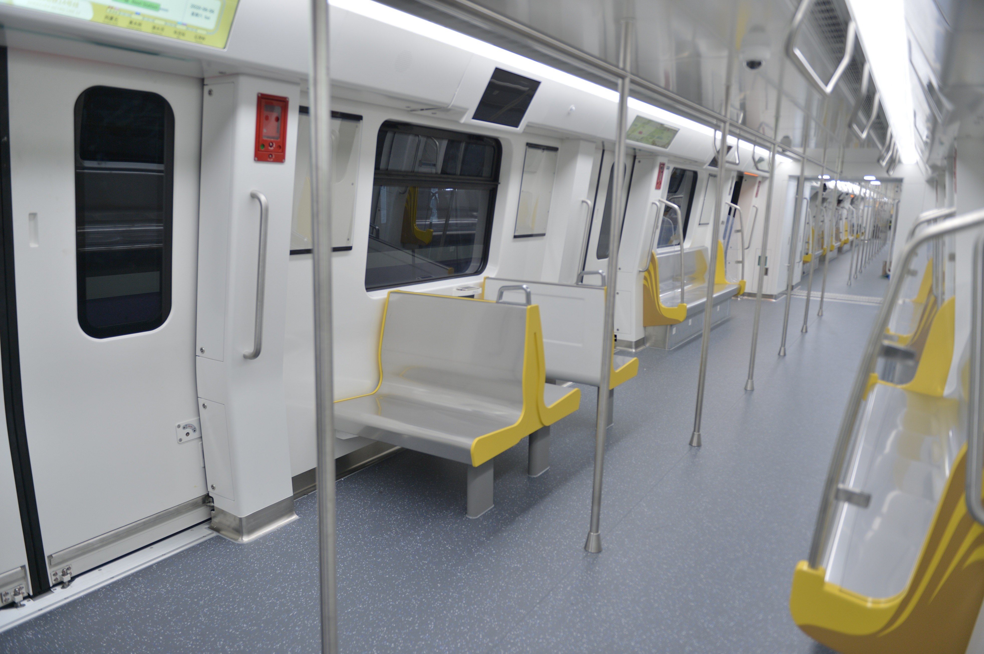 記者了解到,該車輛具有完備的安全檢測保障,包括被動式障礙物檢測、主動式障礙物檢測、端牆防撞、脫軌檢測等,車輛核心控制部件均達到國際安全等級SIL 2以上的要求,滿足全自動駕駛多種場景需求。為了保障全自動駕駛的行車安全,全車採用以太網控車,將整車網絡安全等級提升至2.0,在國內首次集合弓網檢測、隧道檢測、限界檢測、軌道巡檢、走行部檢測等5大類全面綜合的檢測系統,實時監測車輛狀態。同時,車輛設置橫向座椅和手機無綫充電功能,充分考慮長途旅客舒適性需求;通過提升車輛氣密性,大大提升車輛進出隧道的乘坐舒適性。車輛在地板、側牆使用吸音降噪材料,同時,整車氣流組織設計和空調機組採用兩端下出下回的送迴風模式,客室噪聲可降低1到2個分貝。