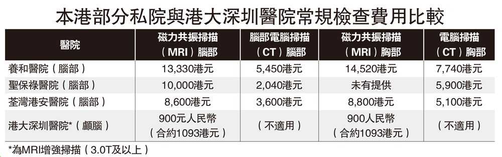 至於預約特定檢查,若在香港公立醫院做超聲造影檢查,或需等候兩年以上;但在內地,只需等幾日甚至當日進行。價格方面,以核磁共振檢查為例,香港私家醫院動輒需幾千甚至上萬港元,而上海地區收費大多為幾百元人民幣,且根據不同地區,內地醫保可報銷比例70%至90%不等。