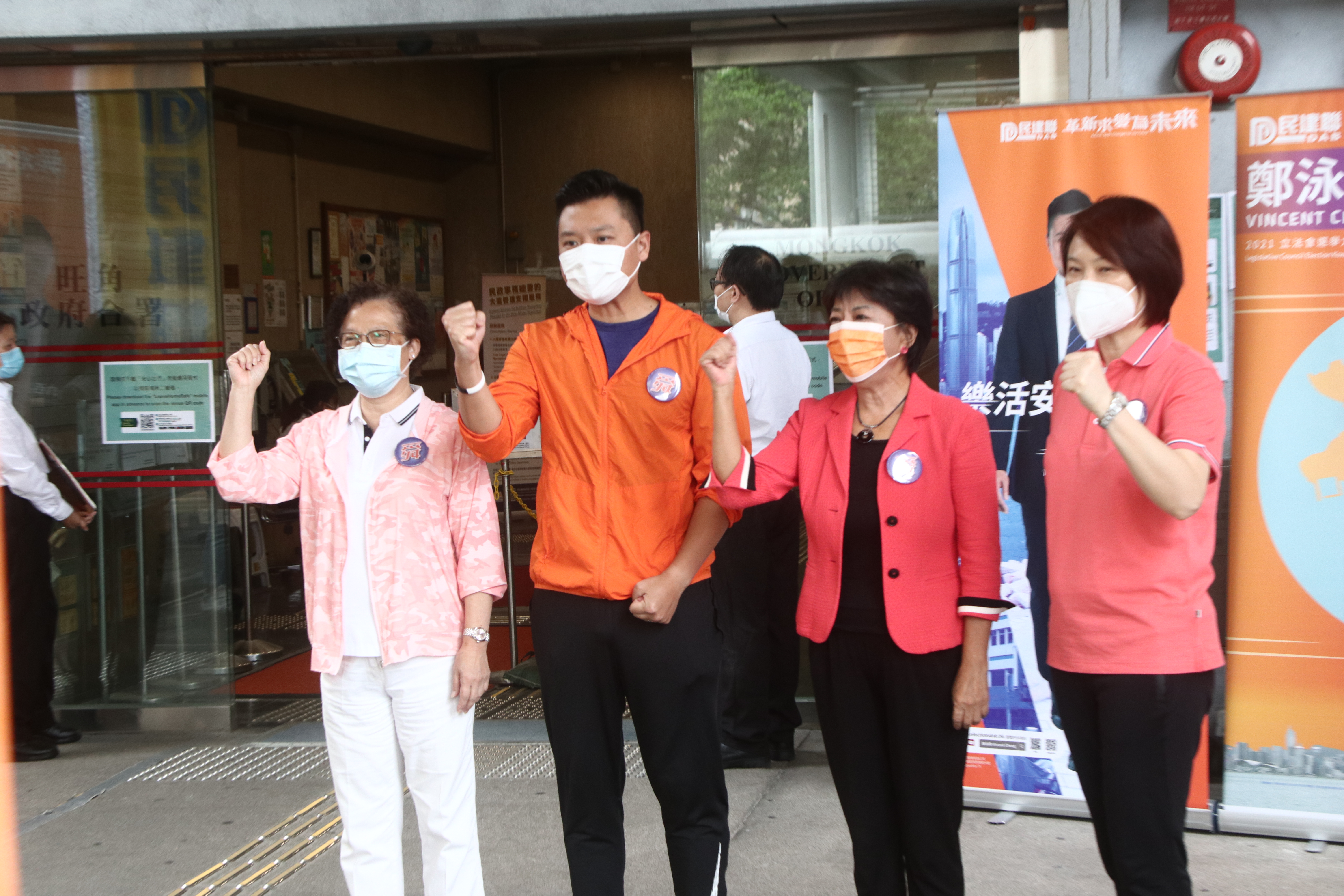 (大公文匯全媒體記者 李九歌)立法會換屆選舉提名期正式展開,民建聯立法會議員鄭泳舜今日(2日)一早於旺角政府合署報名參選2021年立法會選舉九龍西界別,力爭連任。民建聯主席李慧琼、民建聯議員蔣麗雲、工聯會榮譽會長林淑儀等人到場支持。他們表示,今次是完善選舉制度後的第一場立法會選舉,是落實「愛國者治港」原則的重要一環,意義重大。