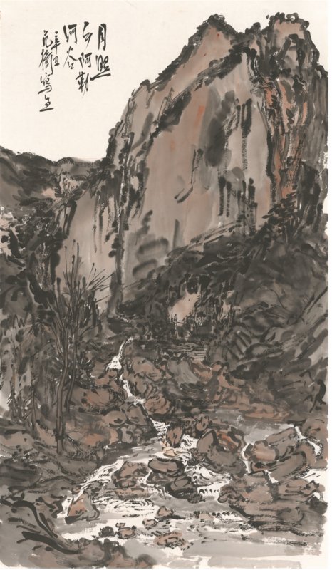 19日上午又到月照鄉獨山村寫生。時霧籠山鄉,峰巒起伏,水流繞山,村屋青蔥。我用淡墨輕嵐小青綠設色為之,畫出點意思,款題《月照獨山水自流》,挺抒情的。
