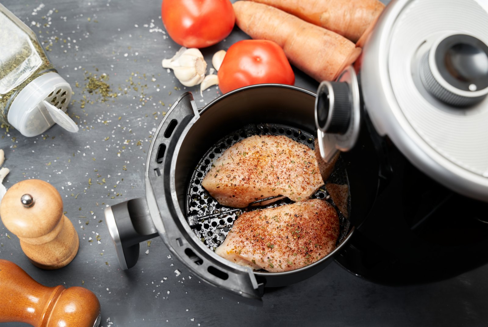 加工食物原本已有不少添加物,如防腐劑、調味劑和醬料等,經過高溫加熱反而會產生致癌物質。醬料醃製的食物在200至250℃會產生更多化學反應,建議以氣炸鍋烹調後再調味。如果用氣炸鍋加熱冷凍薯條、冷凍雞塊、冷凍春卷等,其實等於二度高溫烹調,因為這些加工食品本已經過油炸,再次高溫煎炸有損健康。