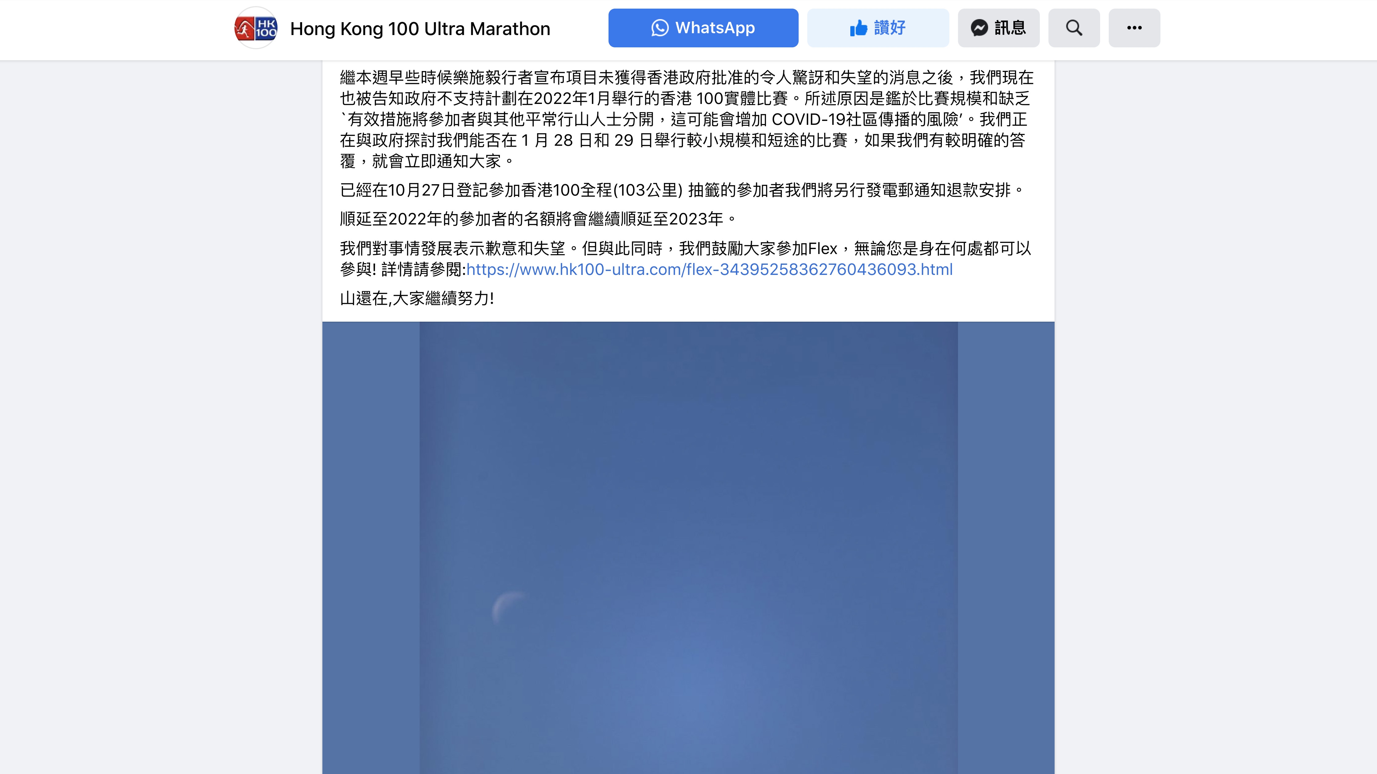 至於已經在10月27日登記參加「香港100」抽籤的參加者,大會將另發電郵通知退款安排。順延至2022年參加者的名額,將會繼續順延至2023年,大會對事情發展表示歉意和失望。
