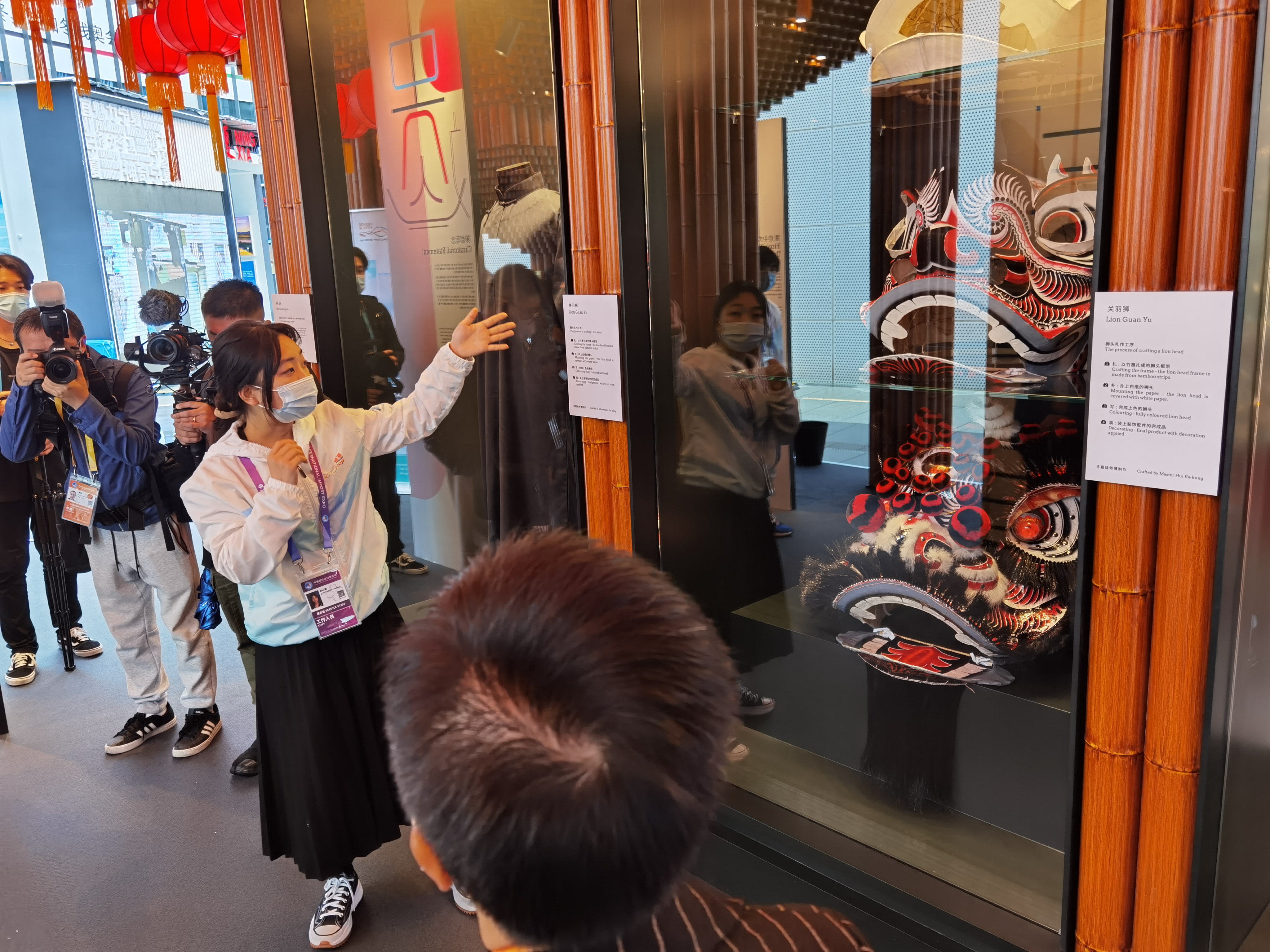 應進博局邀請,香港今年還首次在人文交流綜合形象展示區設展,介紹香港的非遺項目。對於很多入場參觀的港人來說,香港的非遺展品雖然熟悉,但並不完全了解其中的細節,因此不少人走進展廳,不僅仔細聆聽現場的講解,亦會不時提出問題,相當認真。