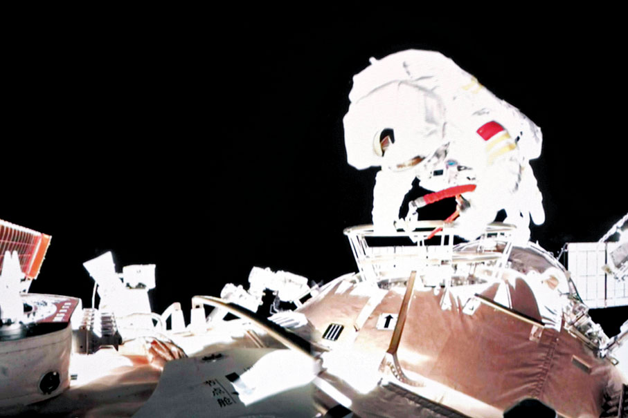 (香港文匯報記者 劉凝哲 北京報道)中國載人航天再次創造歷史,神舟十三號航天員王亞平成為中國首位進行出艙活動的女航天員,邁出了中國女性艙外太空行走第一步!中國載人航天工程辦公室宣布,11月7日18時51分,航天員翟志剛成功開啟天和核心艙節點艙出艙艙門,一個多小時後,翟志剛、王亞平身着中國新一代「飛天」艙外航天服,先後從天和核心艙節點艙成功出艙,在機械臂支持下完成機械臂懸掛裝置與轉接件安裝和艙外典型動作測試等作業,航天員葉光富在艙內支持。神舟十三號首次出艙任務取得圓滿成功。