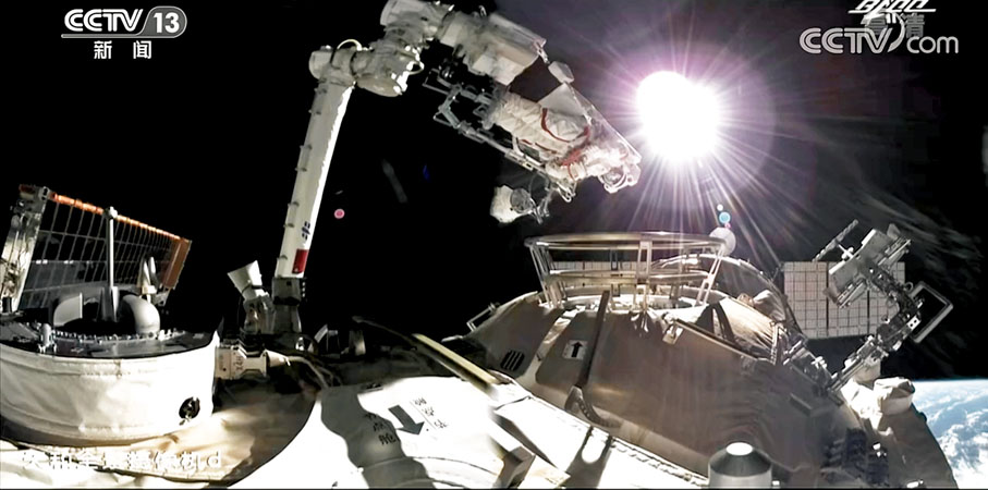此次出艙,翟志剛身着「國旗紅」艙外航天服,王亞平身着的新上行艙外航天服帶有「閃亮金」,這是國旗上星星的顏色。