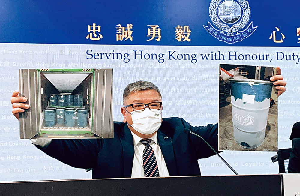 毒品調查科署理總警司吳頴詩表示,警方分析一批由巴西聖保羅海運到港的貨物,該兩個貨櫃報稱為256桶零下18度的急凍果汁,惟貨物到港後,收貨人指示物流公司毋須使用冷藏車或冷凍櫃運送,加上貨主利用鐵桶裝載果汁,而非業界常用的膠桶,相關運送及儲存的成本遠超貨值本身,引起警方懷疑。