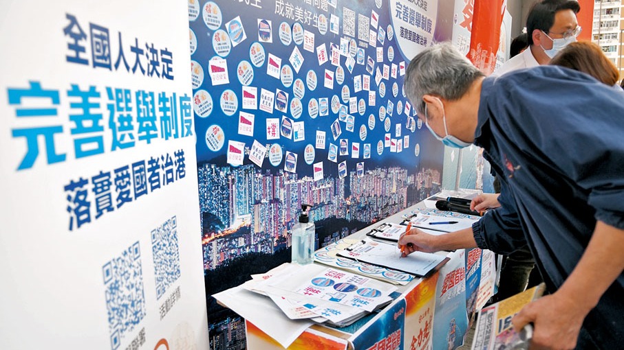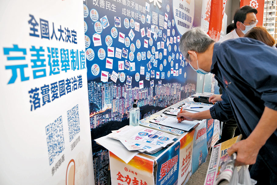 他指,過往立法會過度政治化,很多有志報效祖國、服務香港的有識之士都被香港扭曲的政治生態嚇怕而沒有參選,而新選制公平、公正、公開,確保參選人都是愛國愛港,讓日後立法會必能以香港整體利益為先,擺脫反中亂港分子進入議會為反而反的情況,故近日有很多具傑出才幹的人士都報名參選,未來立法會自然更具廣泛的代表性,充分體現均衡參與。